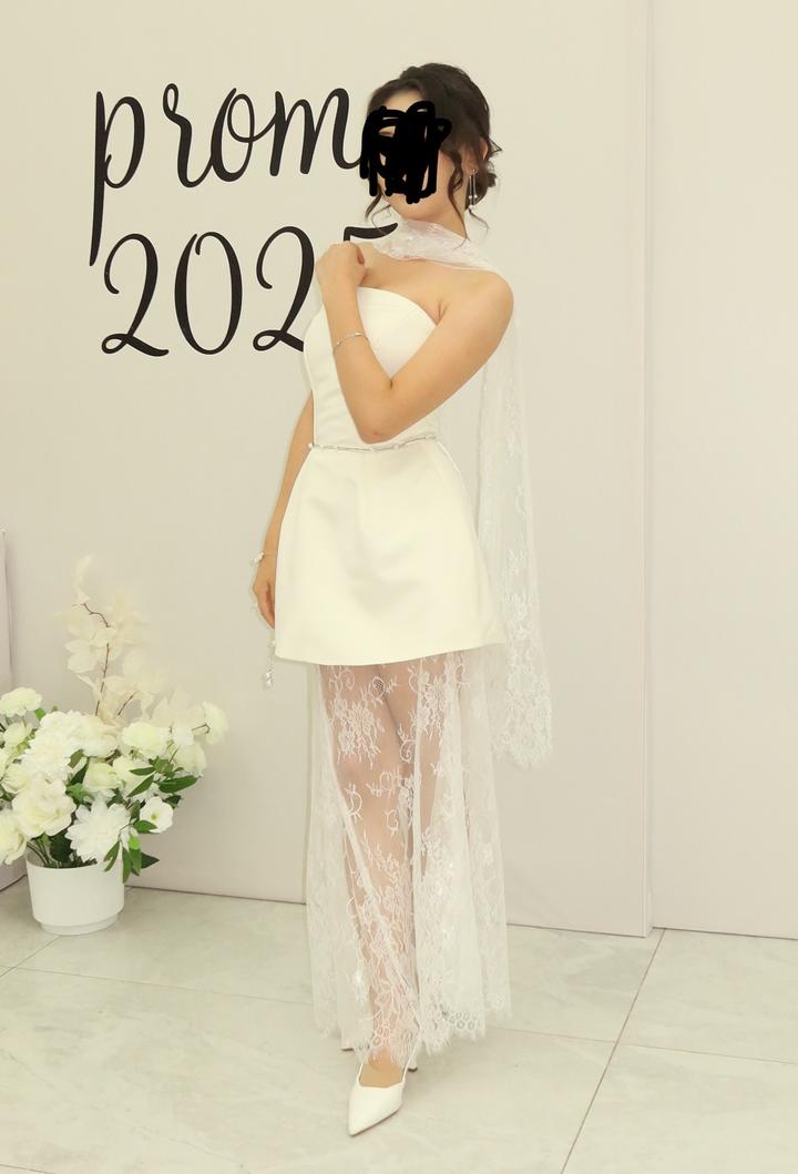 Сшила на заказ на выпускной за 70тыс, размер xs-l так как завязка сзади, в комплекте юбка в кружева шарф и само платье. Артикул: 578117