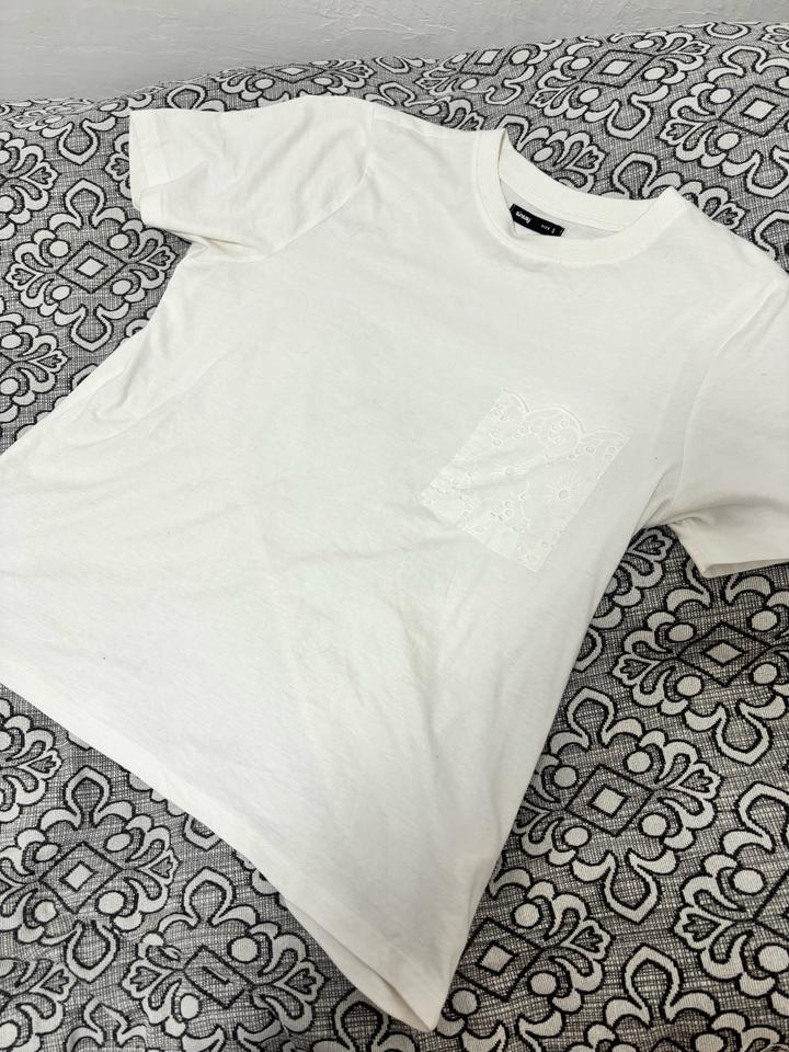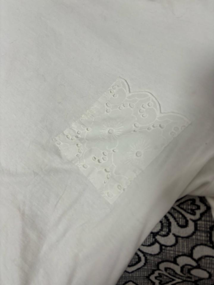 Белая футболка с кружевным карманомS/M
