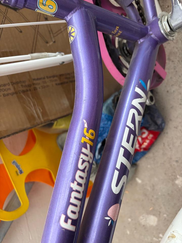 Stern fantasy Россия В хорошем состоянии с корзинкой , звонком, новыми ручками , ручной тормоз, защитой цепи, доп колесами диаметр колес 16 4-7 лет примерно Артикул: 578193