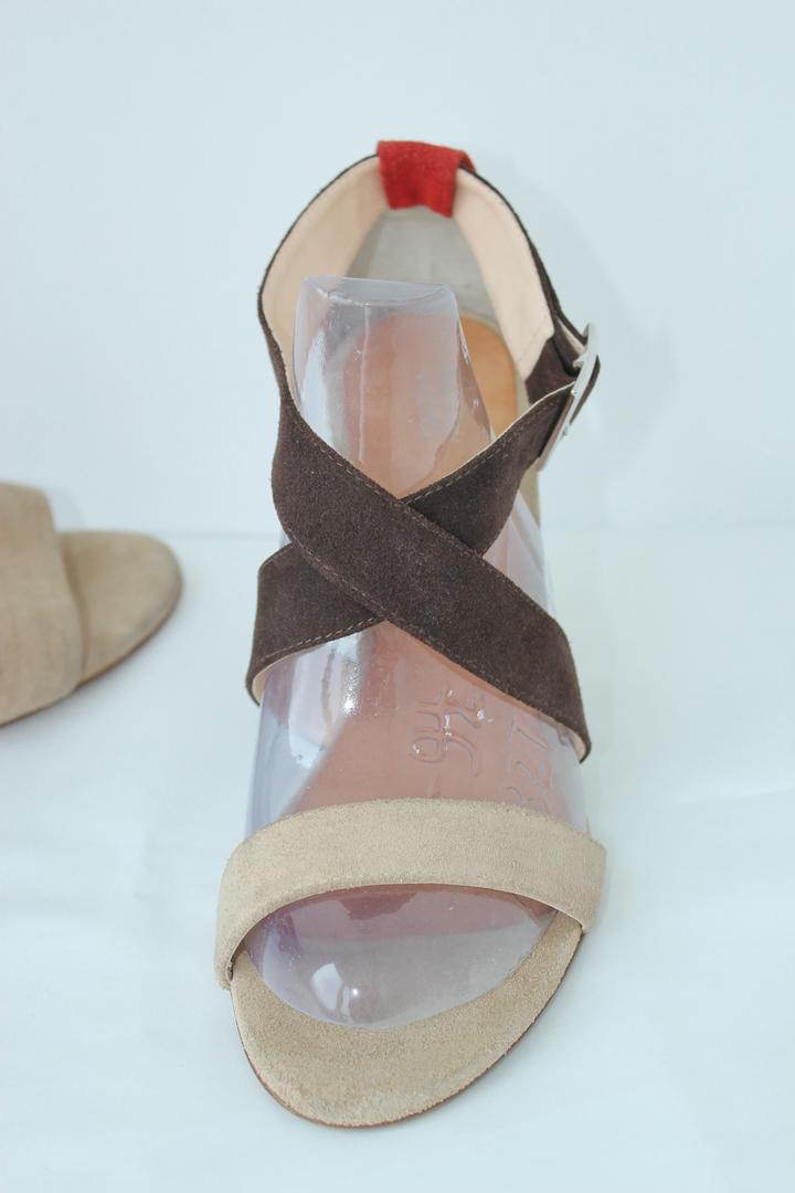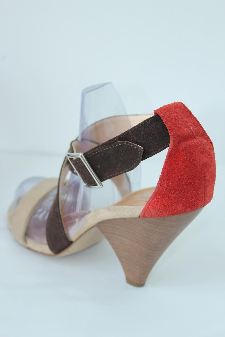 Босоножки от Benetton, в трех цветах, интересный каблук. Новые без коробки, есть потертости и пятнышки т к их примеряли в магазине, этикетка на месте. Размер 41, натуральная замша. Артикул: 578283