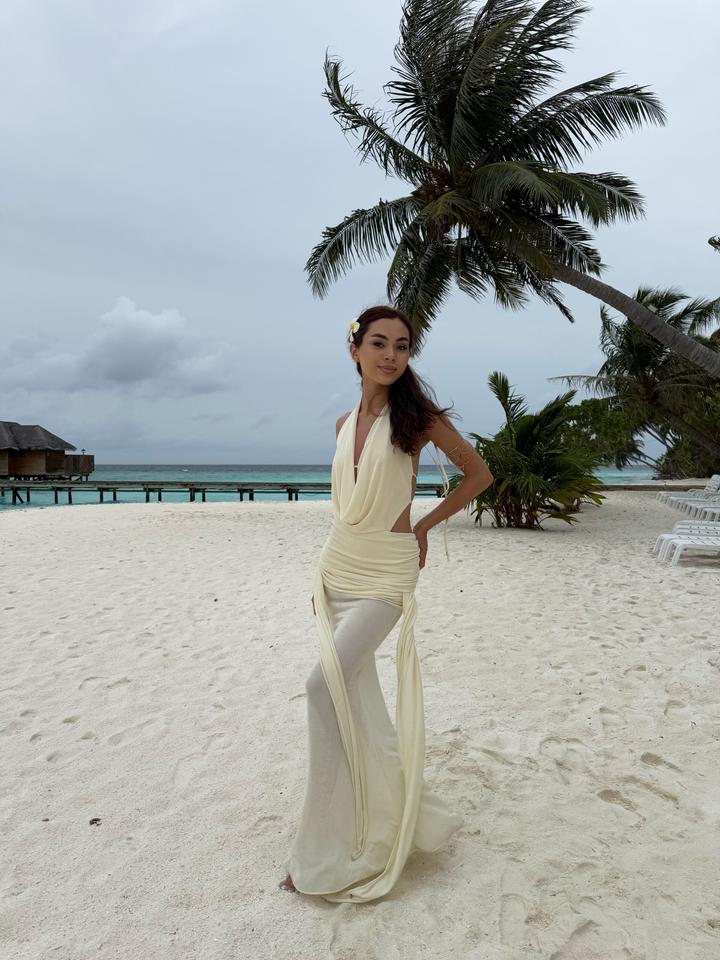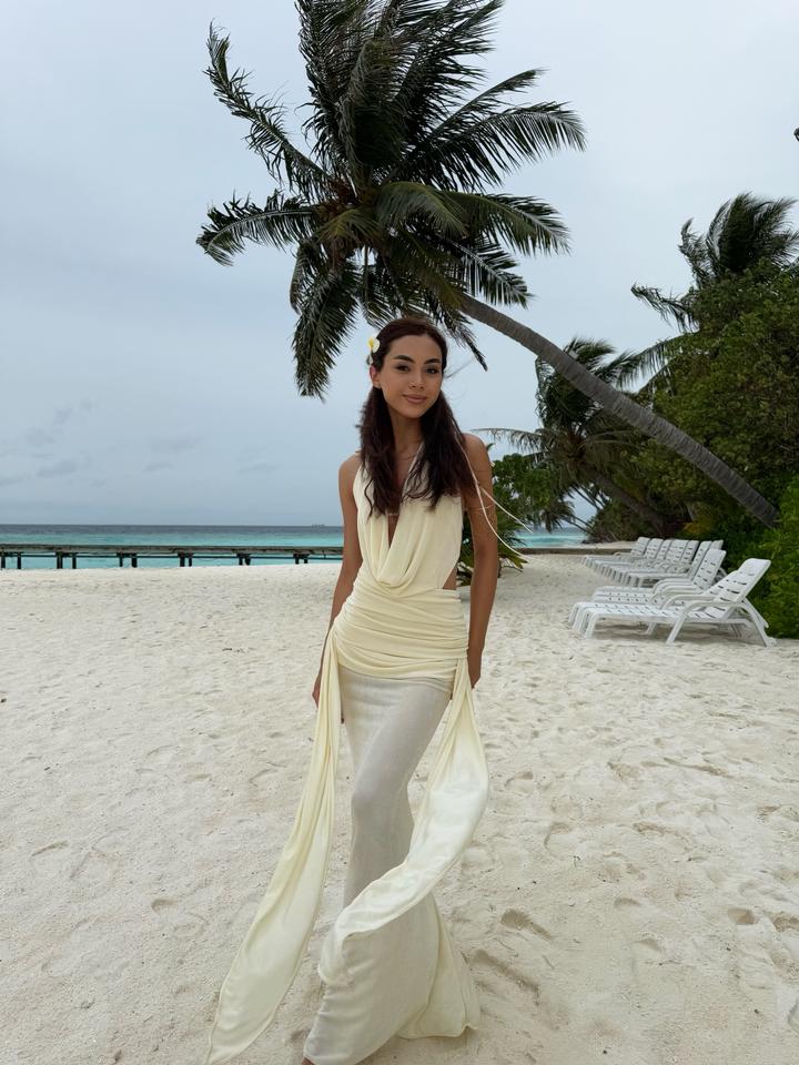 Шикарное пляжное платье с открытой спиной ✨ Очень эффектное, притягивает внимание — в жизни выглядит ещё красивее. Лёгкое, идеально для отдыха, фотосессий и вечеров у моря. Размер S, надевалось 1 раз, состояние идеальное. Спереди аккуратный вырез, сзади полностью открытая спина — выглядит очень стильно и женственно. Артикул: 578329