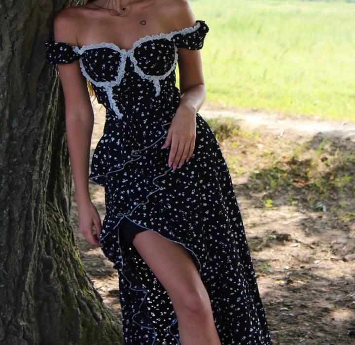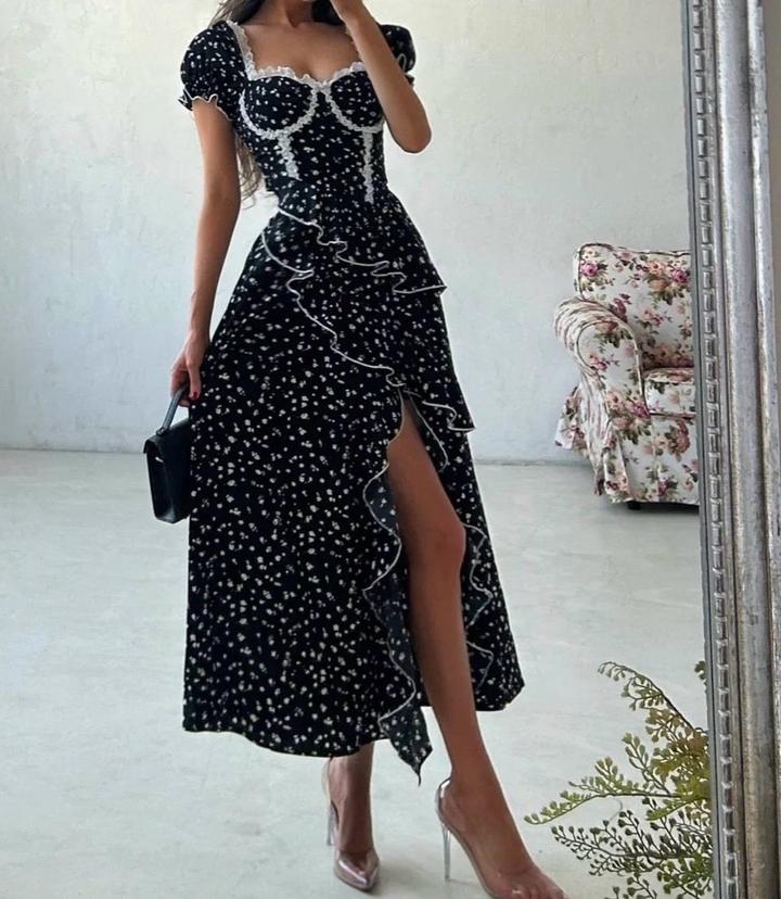 Очень красивое платье с вырезом на ноге, в зоне груди есть чашечки. Сзади есть завязка чтобы подчеркнуть талию. Артикул: 578367