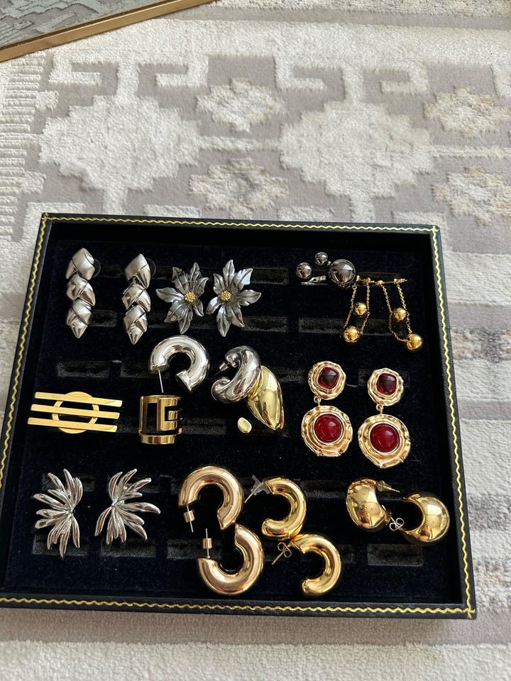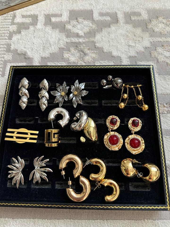 Стильный набор серёг и колец в трендовых дизайнах — идеальный вариант на каждый день и для особых случаев. 💎 Особенности: — Качественное гальваническое покрытие — Долговечный блеск, не тускнеет при аккуратной носке Артикул: 578370
