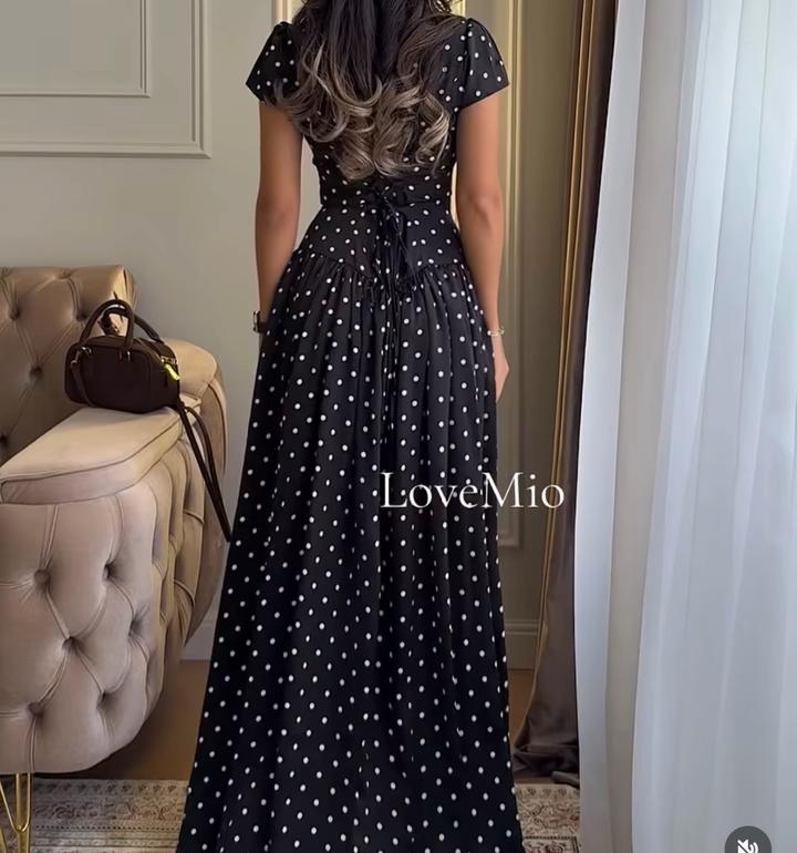 Платье в горошек с завязками сзади, очень хорошо подчеркивает фигуру Артикул: 578372