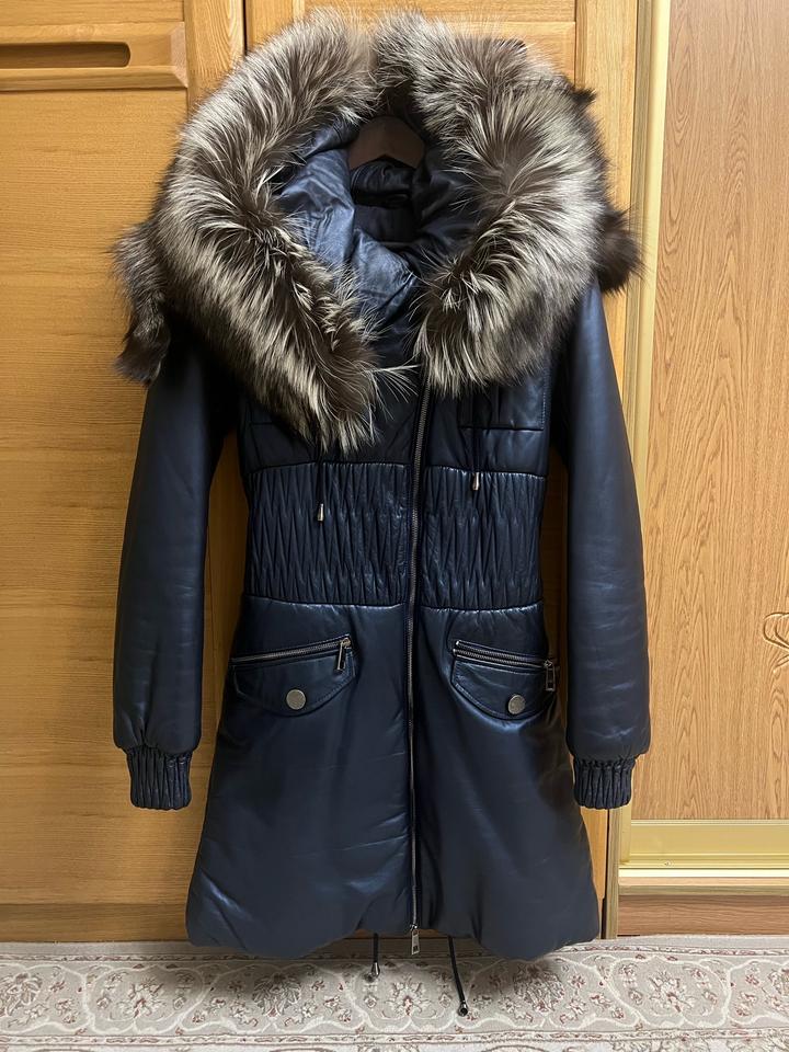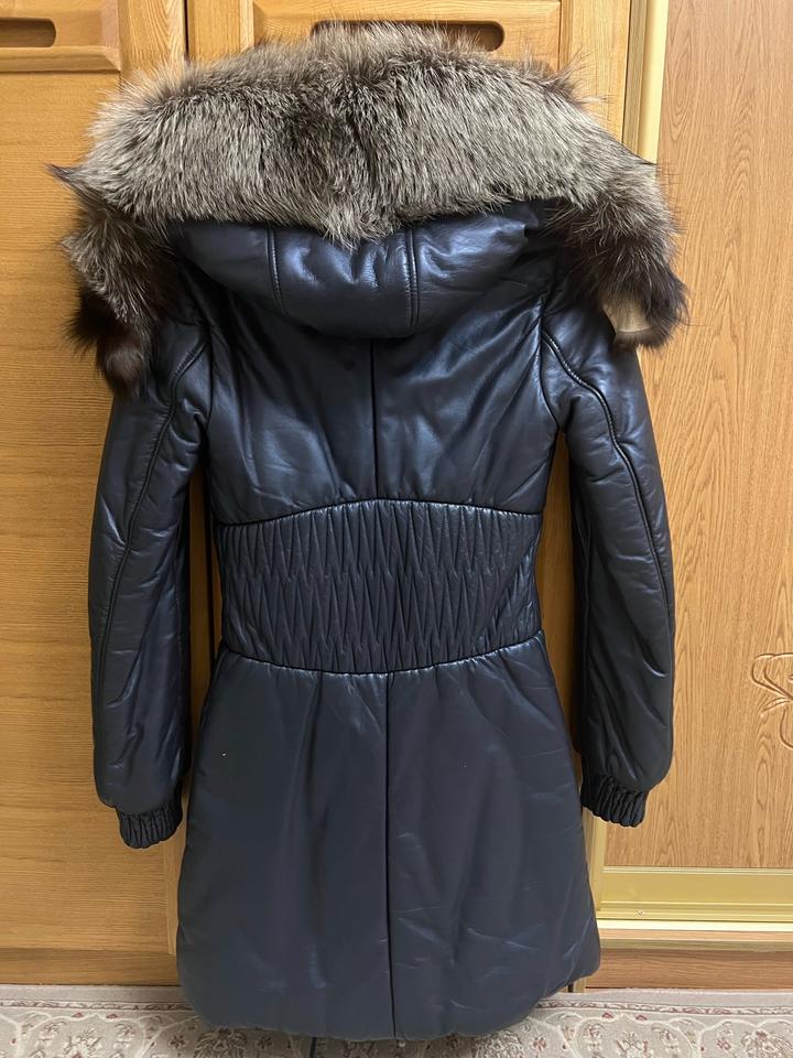 Продам кожаный зимний пуховик отличного качества, размер xs-s, длина выше колена, производство Турция. Богатый воротник-чернобурка. Артикул: 578384