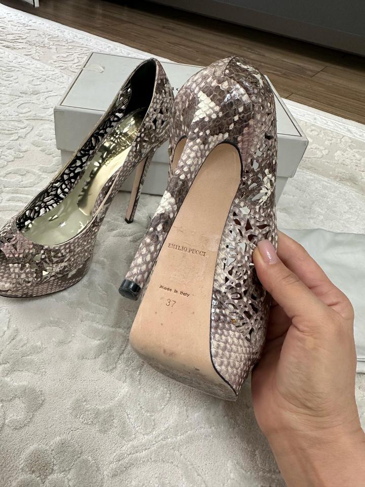 Босоножки EMILIO PUCCI , Очень красиво сливаются с кожей и смотрятся великолепно. Очень удобные за счет платформы . Изящные . 37 размер . Покупала в лакшери хаус , дорого . Артикул: 578390