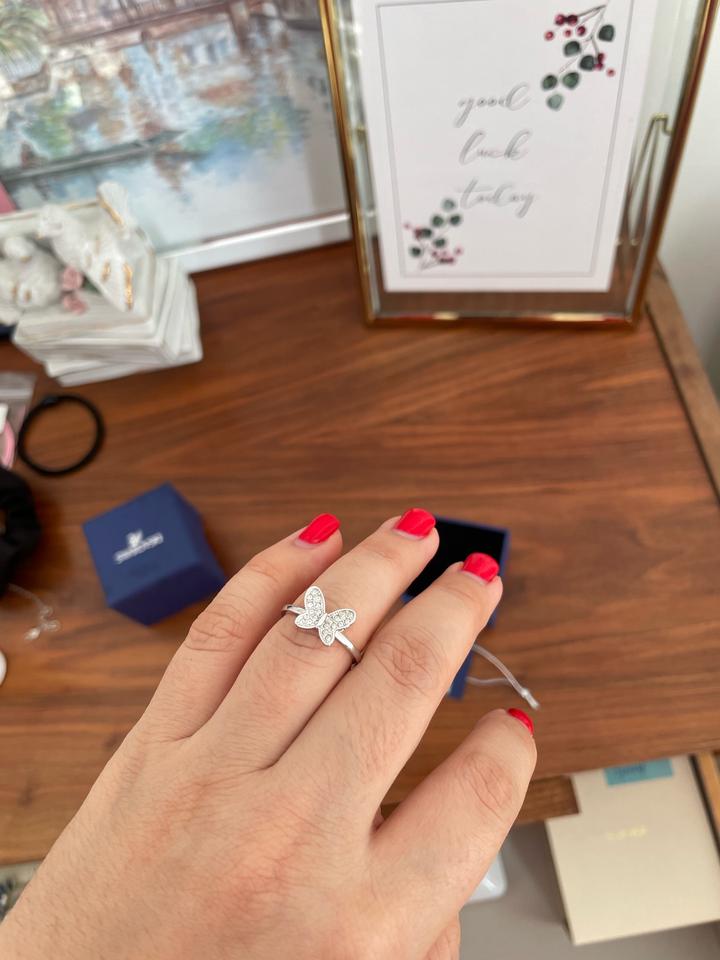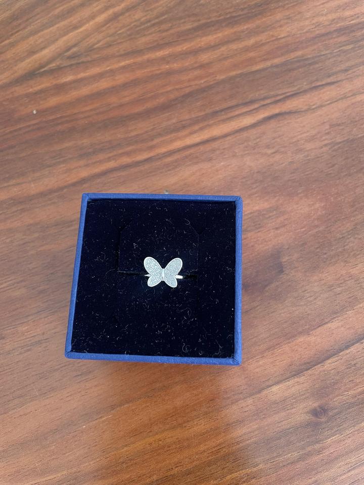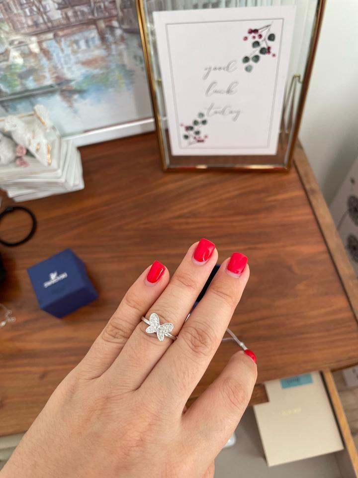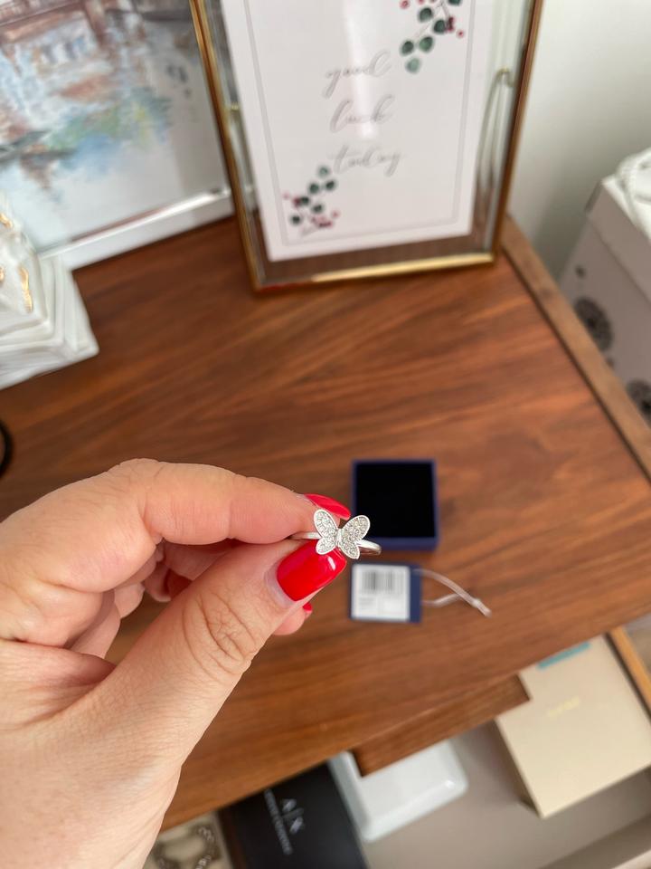 Нежное кольцо от Swarovski с изящной бабочкой, инкрустированной кристаллами. Очень аккуратно смотрится на руке, добавляет образу лёгкости и женственности. * Бренд: Swarovski * Размер: 16 * Материал: металл с покрытием + кристаллы Swarovski * Цвет: серебристый * Дизайн: бабочка Идеально подойдёт: — на каждый день — как подарок — для романтичных и лёгких образов В комплекте фирменная коробка. Состояние: отличное. Артикул: 578436