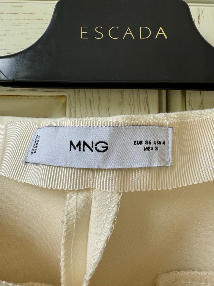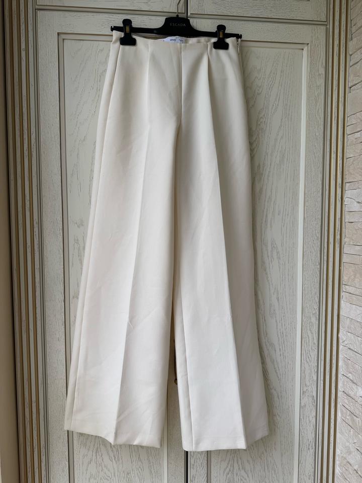 Брюки Mango. В хорошем состоянии. Единственное, что внизу по строчке распоролось, нужно будет прострочить. Размер 36, высокая посадка, хорошая длинна. На весну самое то, ткань не тонкая. Цвет молочный Артикул: 578494
