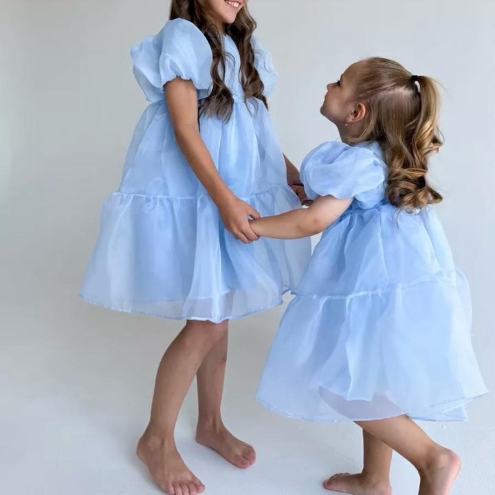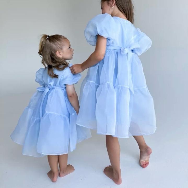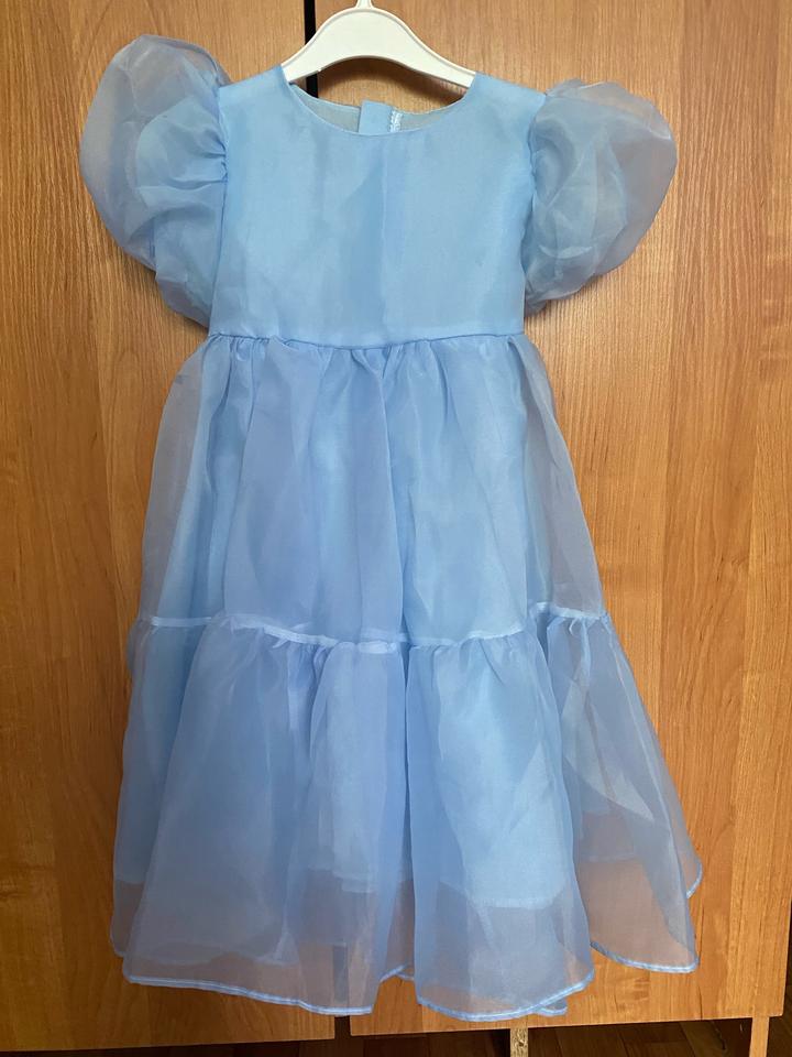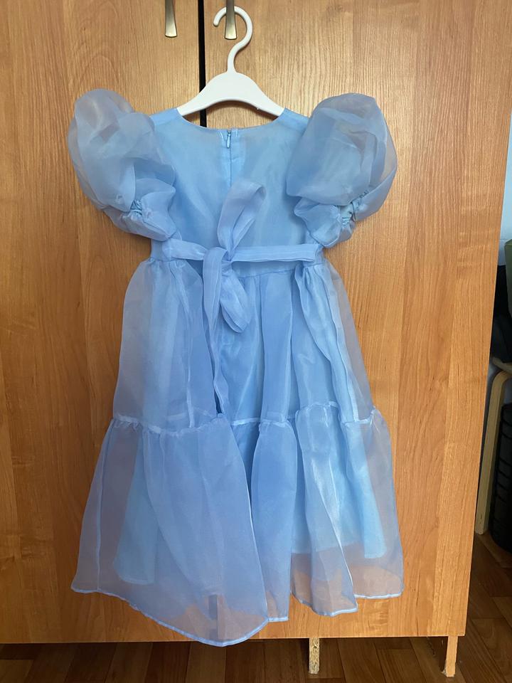 Пышное нарядное платье, размер китайский 120 (подрйдет на рост 98-104-возможно до 110, обхват талии 61 см, длина изделия 58). Сзади завязывается на бантик. Подклад хлопок. Само платье легкое. Рукава фонарики. Дочка надевала один раз. В отличном состоянии. Артикул: 578504