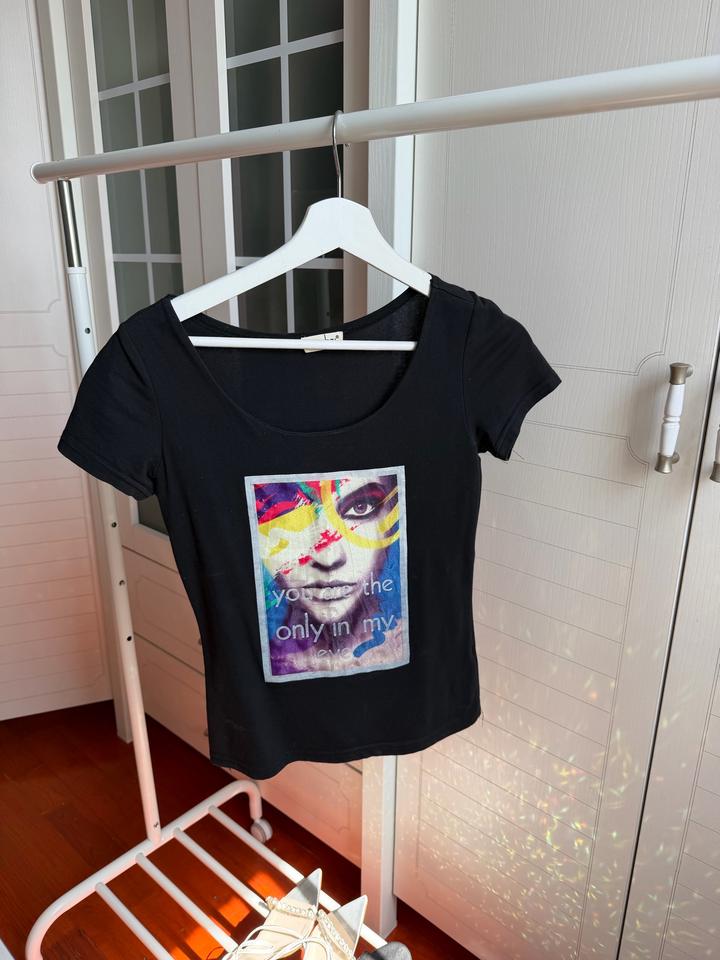 Футболка черная с принтомS