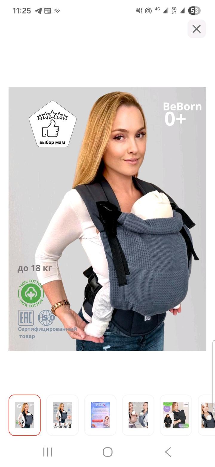 Слинг в отличном состоянии, качество ткани хорошее (100% хлопок) В серо-синнем оттенке. **Рюкзачок BeBorn. От 0+ до 1.5 лет. С 2.8 кг до 18 кг Артикул: 578528