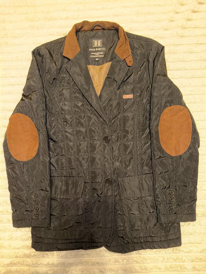Классический крой, лёгкая стёганая ткань. Контрастный воротник и налокотники, застёжка на пуговицах, есть карманы. Подходит на межсезонье. Артикул: 578588