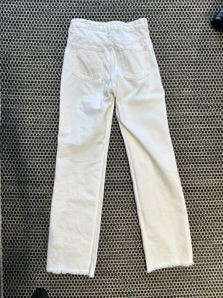 Белый цвет Снизу необработанный край Удобные, высокая посадка, прямой крой Размер указан W34, то есть размер 42-44 Артикул: 578701