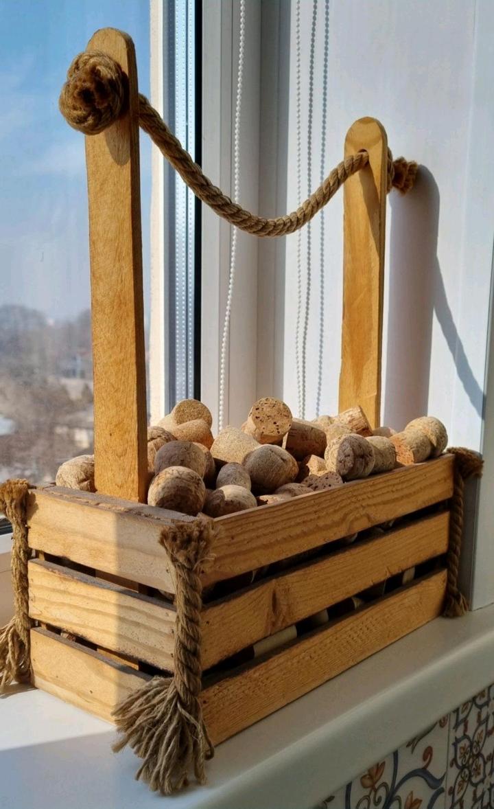 Винные пробки в деревянном ящике-