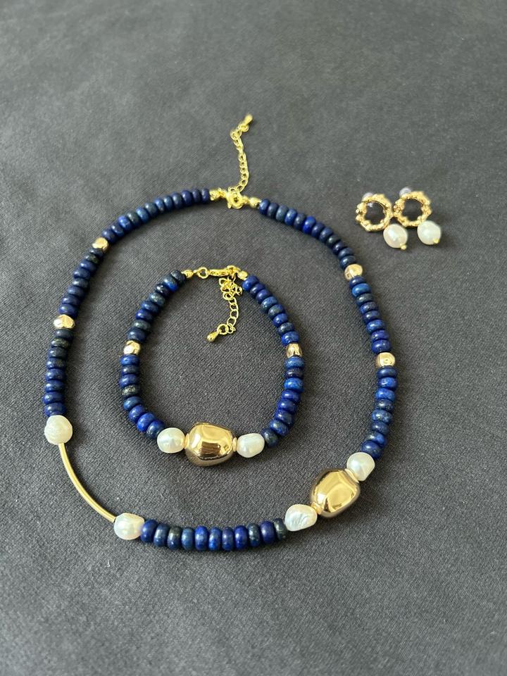 Шикарный набор из натурального лазурита, ставки жемчуг и люксовая фурнитура Длина колье 36см + 5 см регулирование Браслет 18 см +5 см регулирование Ручная работа, этот набор будет толко у вас Артикул: 578774