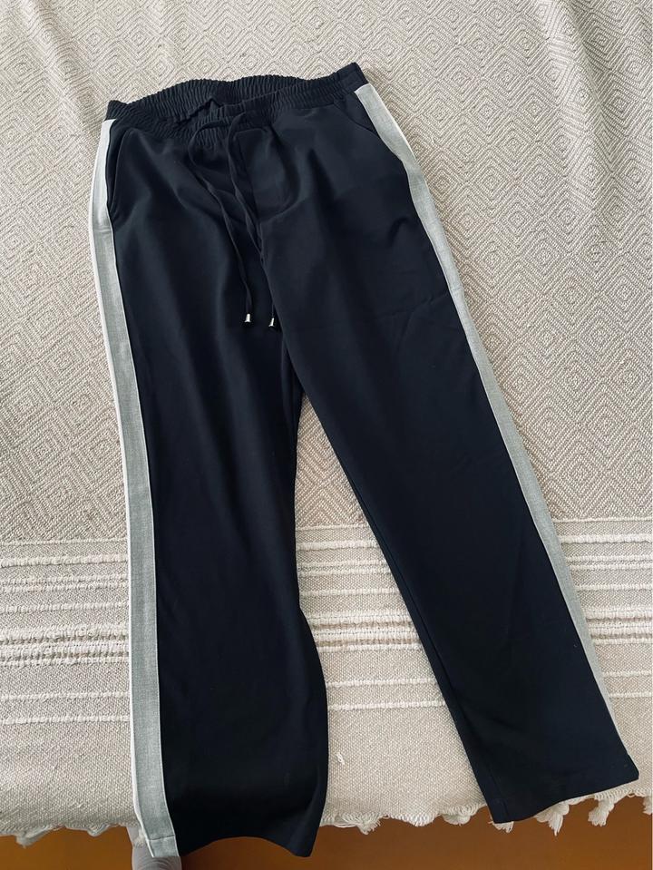 Легкие и удобные женские брюки(джоггеры) от бренда LC Waikiki (линейка LCW Casual). • Цвет: Классический черный со светлыми (серыми) лампасами по бокам, что визуально вытягивает силуэт. • Размер: 38 (европейский), соответствует российскому 44-46 • Особенности: Удобный эластичный пояс-резинка с утягивающим шнурком для идеальной посадки. Ткань приятная к телу, не сковывает движения. • Состояние: Отличное, в носке не были. Артикул: 578807