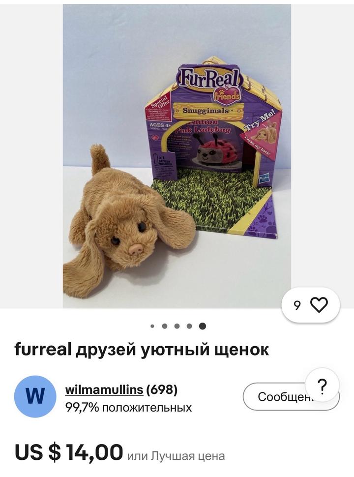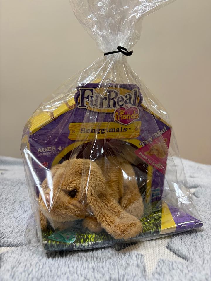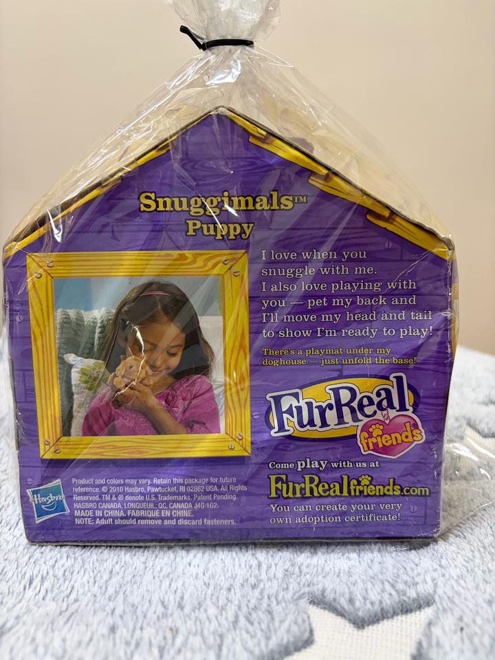 Новая интерактивная игрушка FurReal Friends Snuggimals Puppy. Функции: При нажатии на спинку щенок двигает головой и машет хвостом. Питание: Работает от одной батарейки типа AA (обычно входит в комплект для демонстрации). Возраст: Рекомендуется для детей от 4 лет. Артикул: 578813
