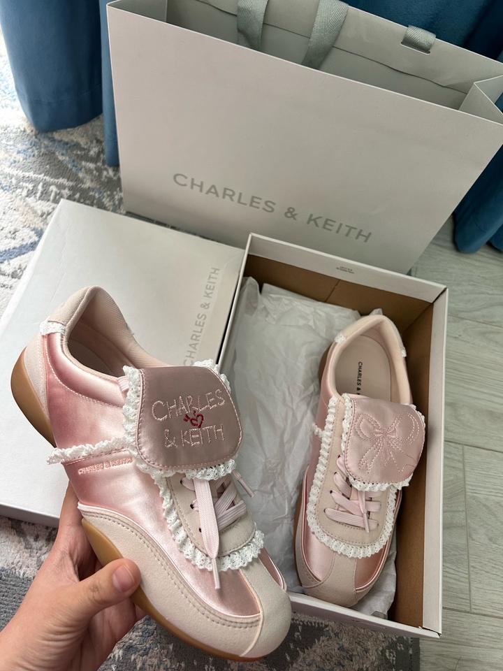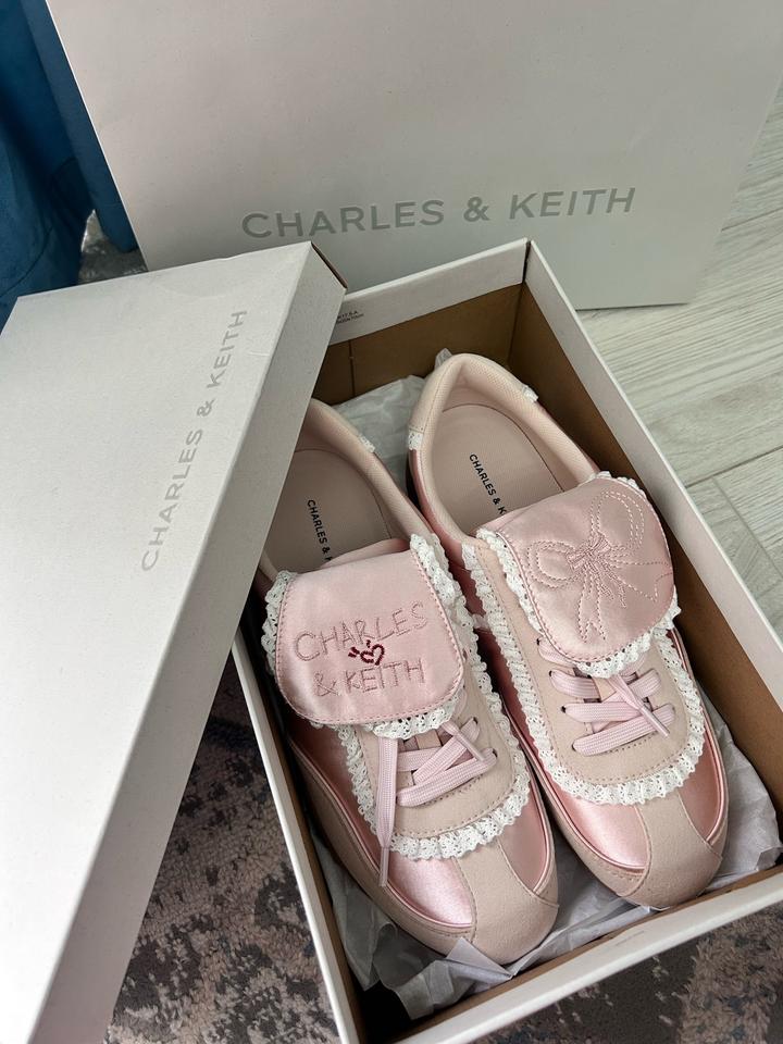 Стильные кроссовки Charles & Keith, нежно-розового цвета 💗Модель: Louise Lace-Tr38
