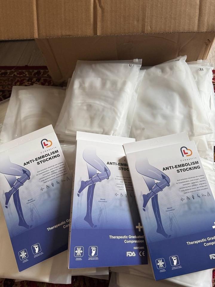 Чулки компрессионные женские (антиэмболические) послеоперационные и после кесарева сечения. В наличии размеры M, L, XL, XXL. Новые в заводской упаковке. Артикул: 578823