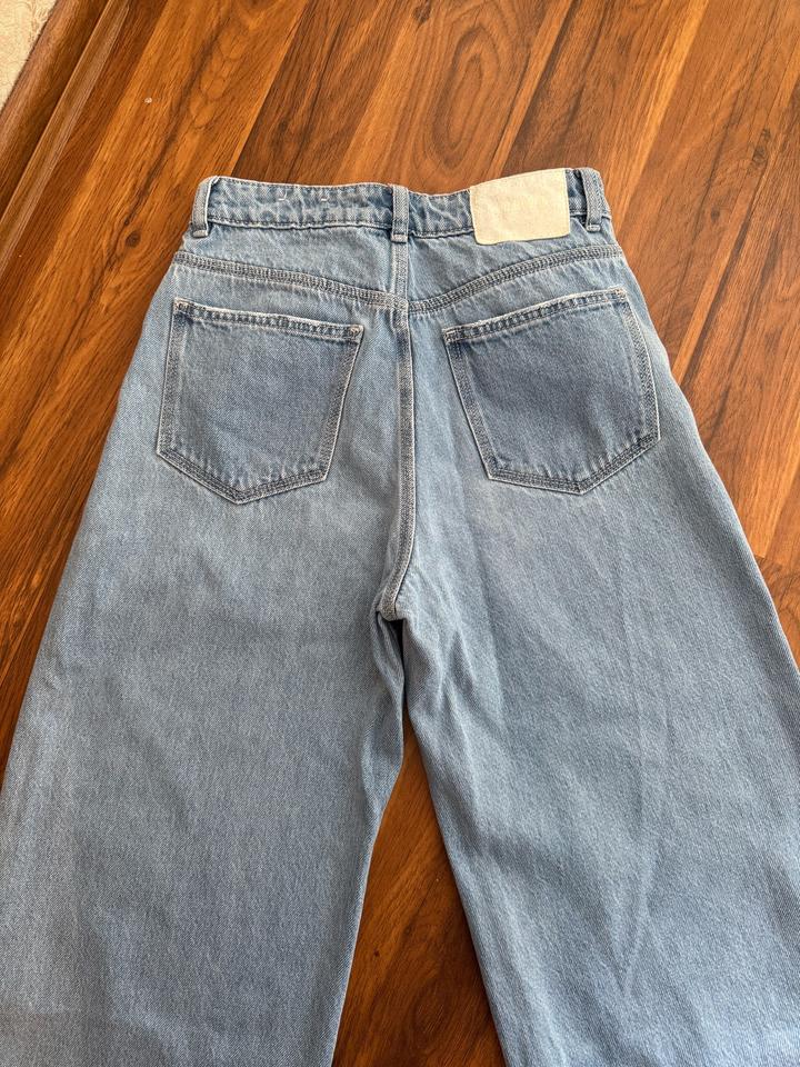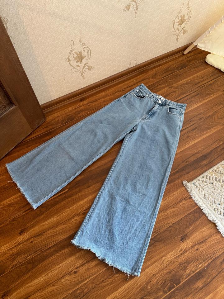 Джинсы широкие, очень стильные, офигенный голубой цвет. Носила пару раз, так как талия слишком большая оказалась для меня. качество отличное Артикул: 578855