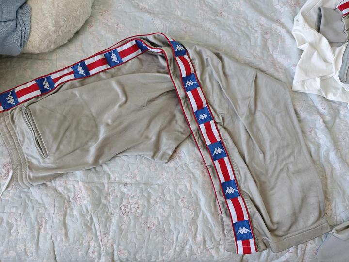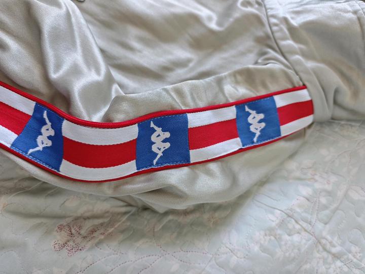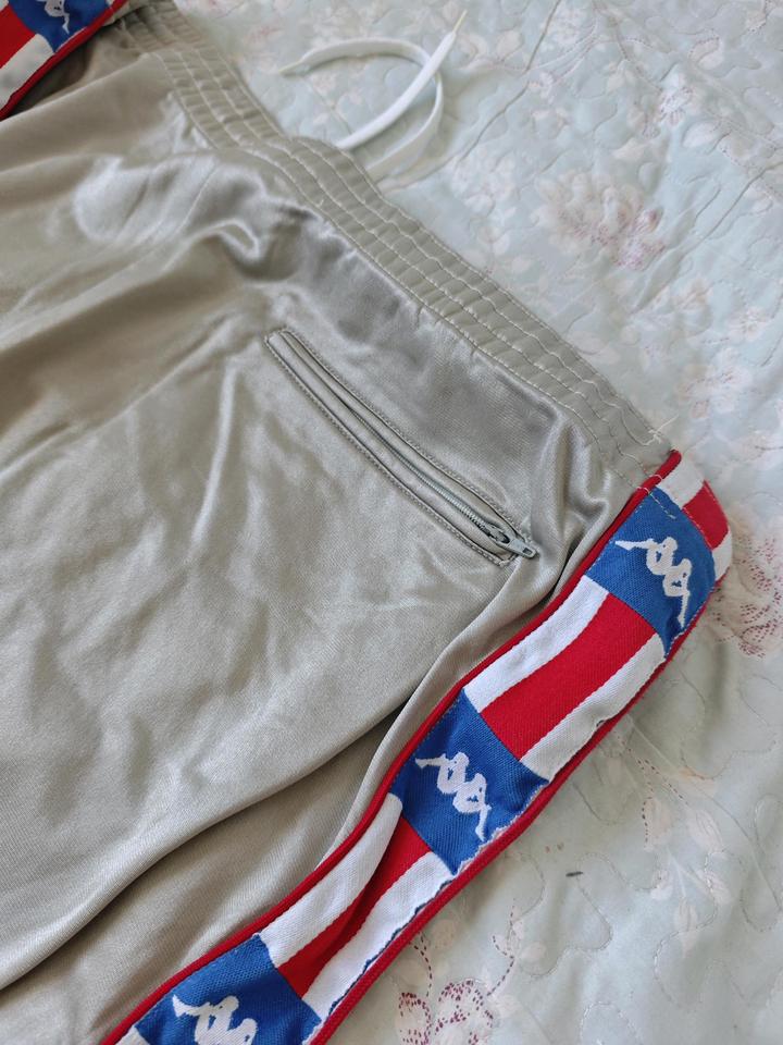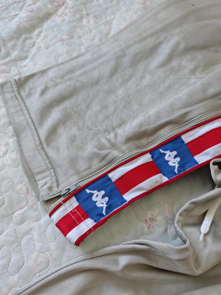 Офигенская спортивка от каппы, практически в идеальном состоянии, единственный минус это то, что я прожег штаны при утюге. Снизу с передней стороны, видно на последнем фото, хз мб кто то зашьет красиво и сделает что то по красоте. Одевалось пару раз, урвал в секонде, сделано в Италии, оригинал Артикул: 578921