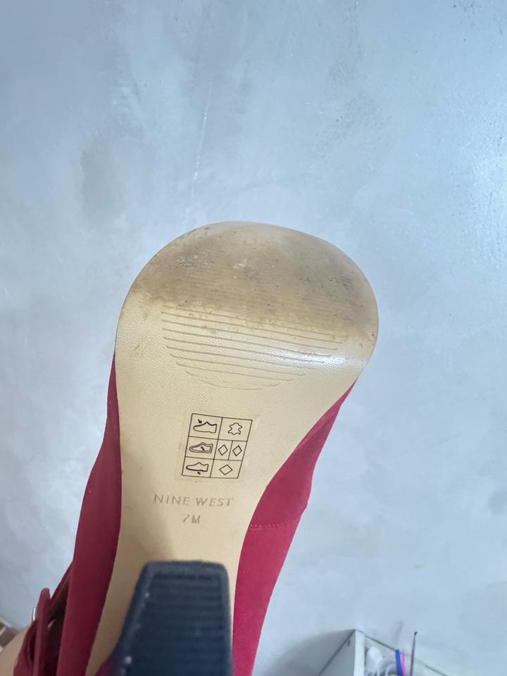 Оригинал.Были куплены в бутике Nine West за 150$. Очень удобные! Пару раз только одевала, потом вышла в декрет и некуда было носить. В отличном состоянии, в родной коробке, аккуратно хранились. Материал верха- Натуральная замша. На фото цвет ярче, в жизни приглушенный темно-красный ближе к винному цвету Артикул: 578931