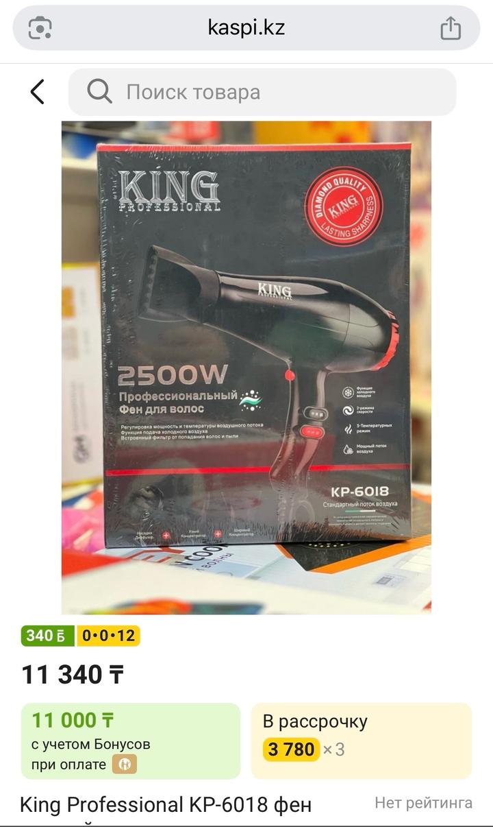 Новый фен для волос фирмы king. Новый в коробке, не пользовались Артикул: 579068