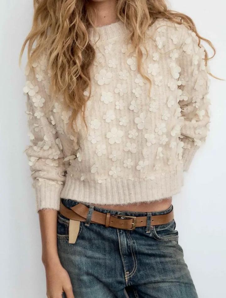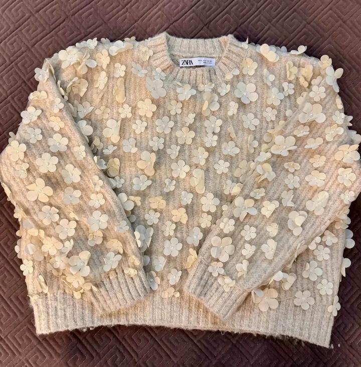 Нежный бежевый свитер Zara с цветочками, размер М в идеальном состоянии Артикул: 579112
