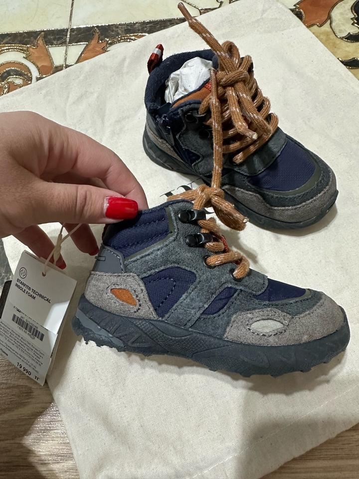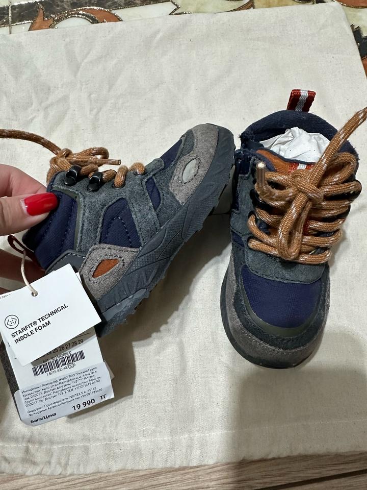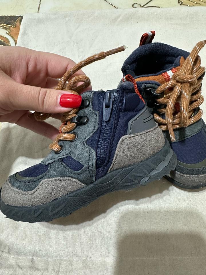 Ботинки мягкие тряпочные 22 размера (13,6см) надели один раз и поняли что малы. Подошва мягкая, легко гнется, хоть они и заявлены как ботинки, но довольно тонкие, на весну даже ранее лето Артикул: 579116