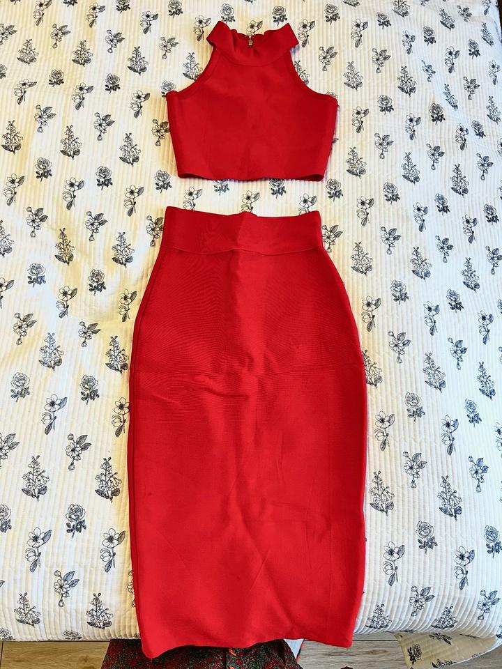 Стильный комплект-двойка из плотного утягивающего материала, красиво подчеркивает фигуру и создает аккуратный силуэт. Надевался всего 2 раза, состояние отличное. Есть пару небольших пятен, поэтому цена снижена. Покупала за 40 000 тг. Подойдет на размер XS-S. Артикул: 579144