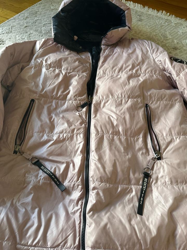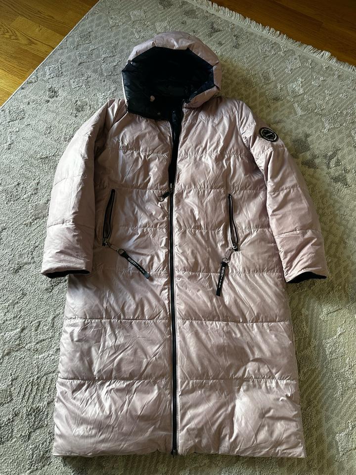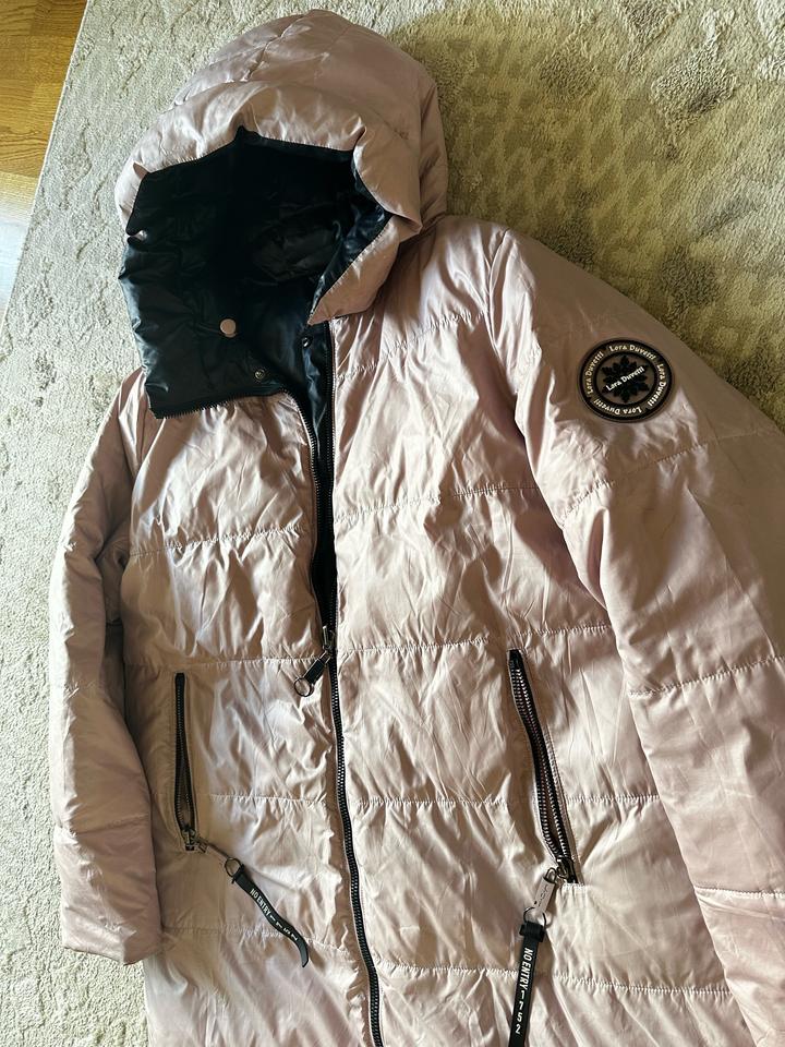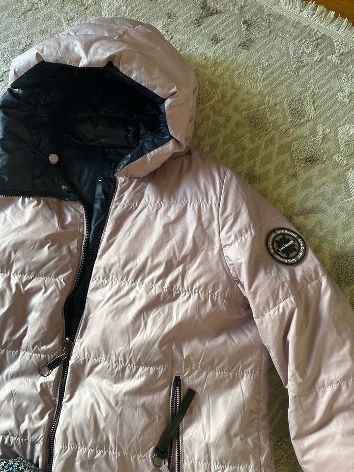 Pink and dark blue color of winter jacket Lora Duvetti brand It’s in good condition and no defects. It’s perfect for Astana winter weather It’s do like heater during walk it has many pockets and it’s long size M-L Артикул: 579188