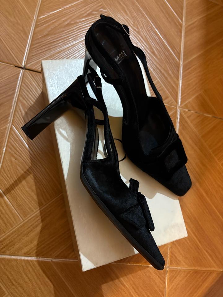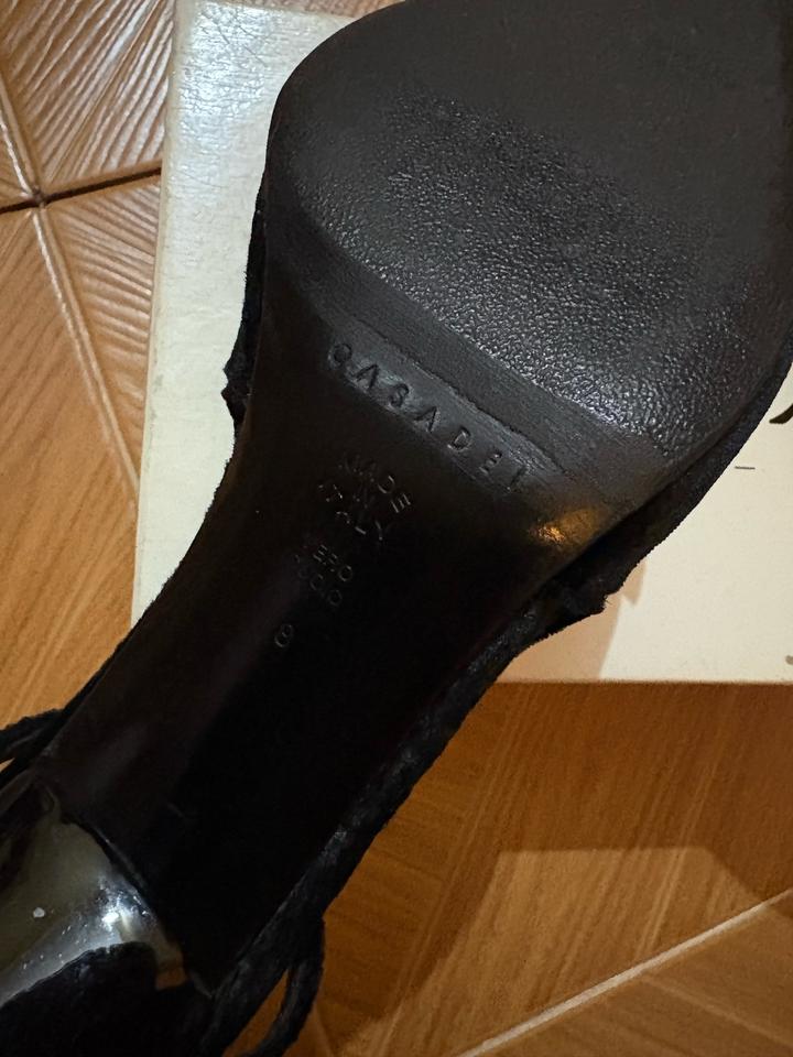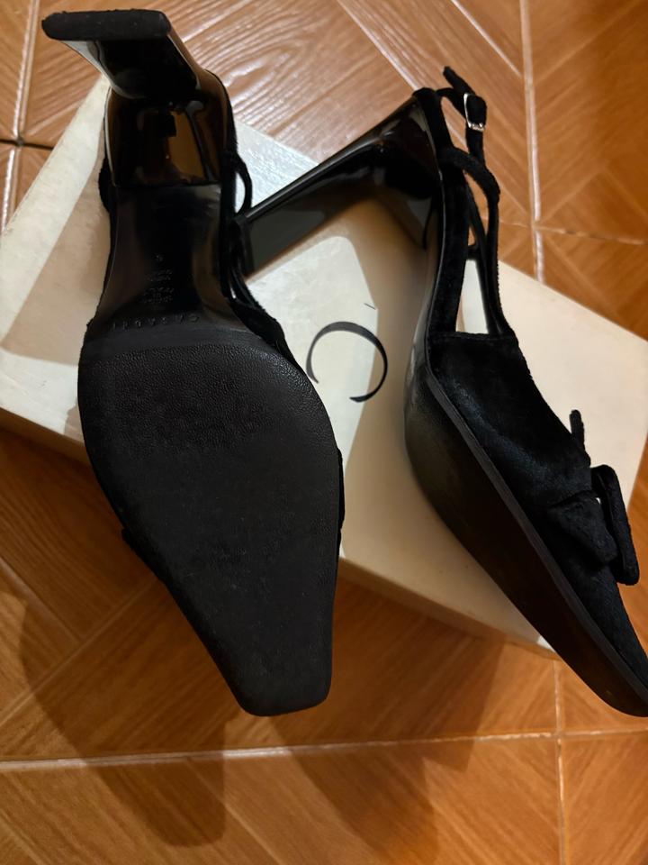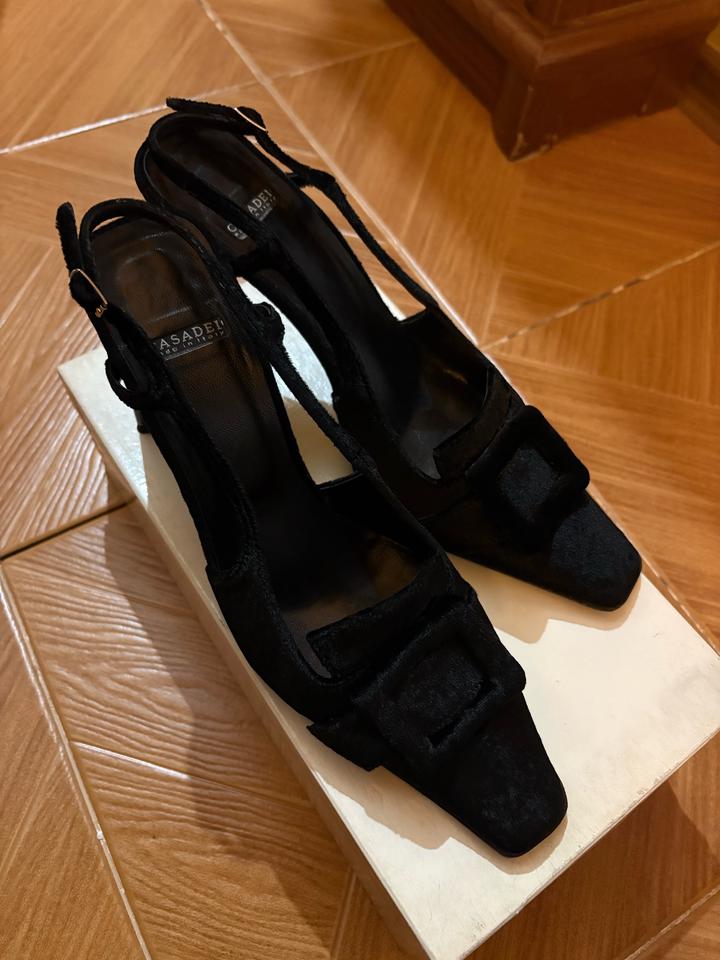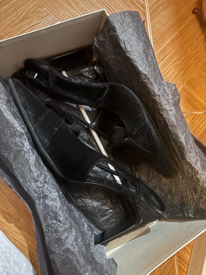 Босоножки с открытой пяткой, велюровые 38 размер. Надевали пару раз на мероприятие. Стоит профилактика. Высота каблука 11см. Артикул: 579303