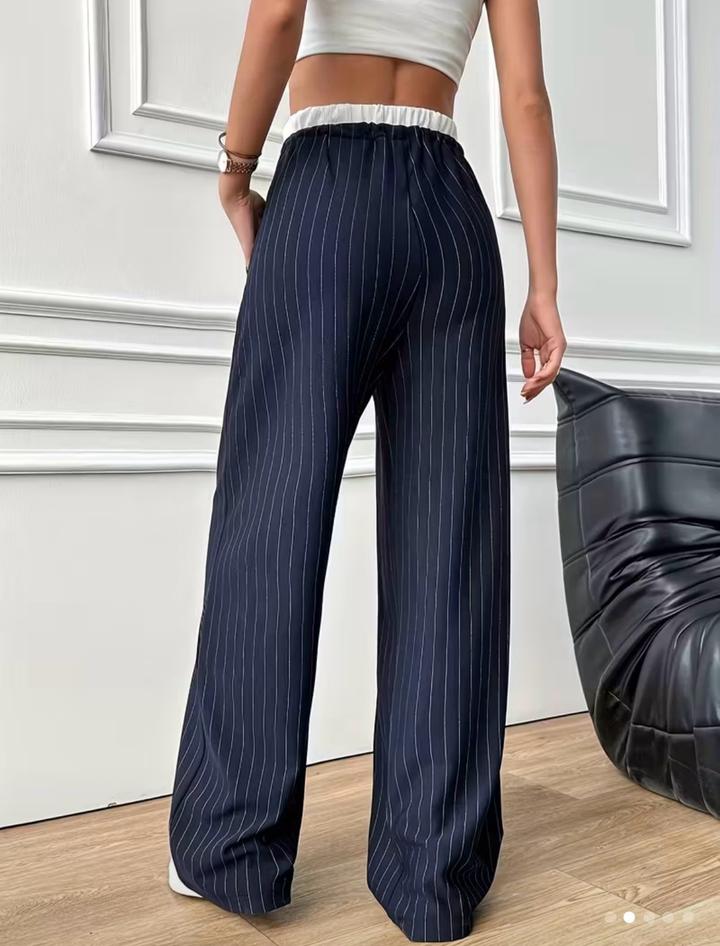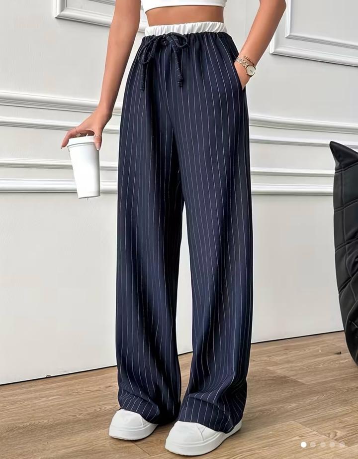 Женские брюки классического кроя синего цвета в белую полоску — стильная и универсальная модель для делового и повседневного гардероба. Выполнены в прямом силуэте, визуально вытягивают фигуру и подчёркивают элегантность образа. Вертикальная полоска добавляет стройности и делает модель актуальной. Брюки комфортно садятся по фигуре, подходят для офиса, учёбы, встреч и прогулок. Легко сочетаются с рубашками, блузами, жакетами и базовыми топами. Артикул: 579356