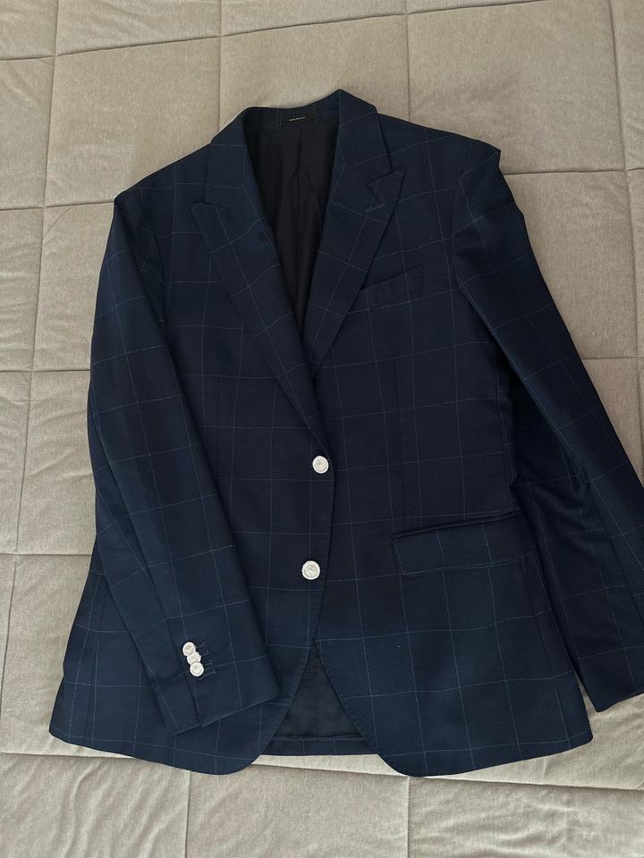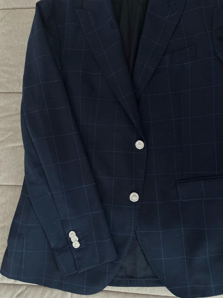 Пиджак Massimo Dutti 52 рр. 1 выход на презентацию. Состояние нового. После химчистки!! Все пуговицы запечатаны. Темно-синий в клетку. Очень презентабельный и невесомый 🤌🏽 Артикул: 579400