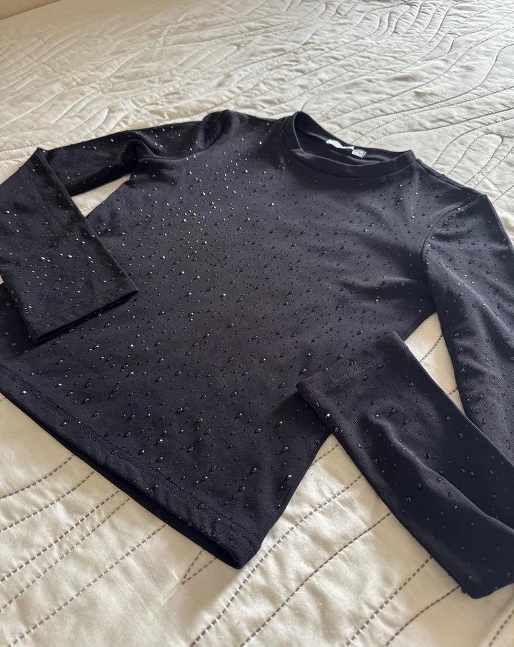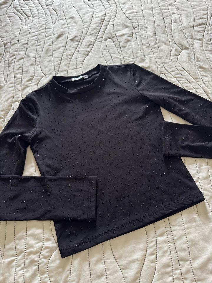 Кофта черная со стразами. Одета 1 раз. В отличном состояний. Ткань прятная к телу. Артикул: 579425