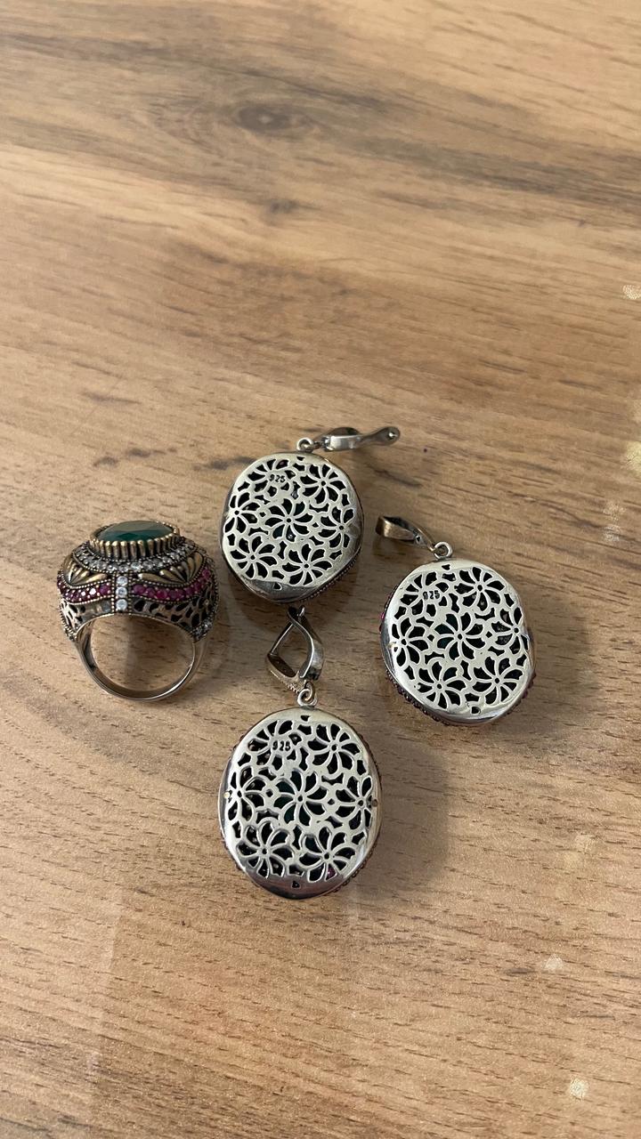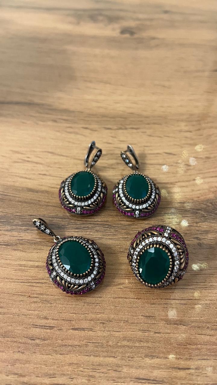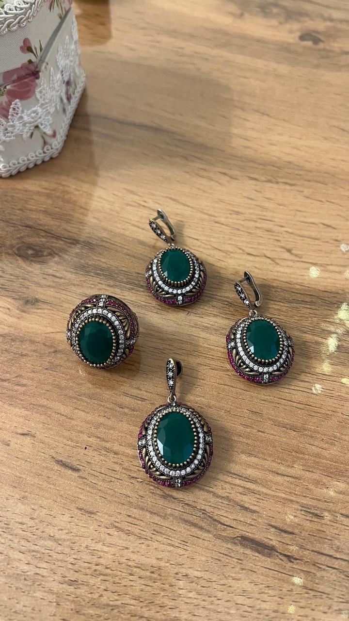Набор «Хюррем Султан» — серьги, кольцо и подвеска из серебра с изумрудами. В идеальном состоянии, надевали один раз. Маме большие 🤭 Артикул: 579560