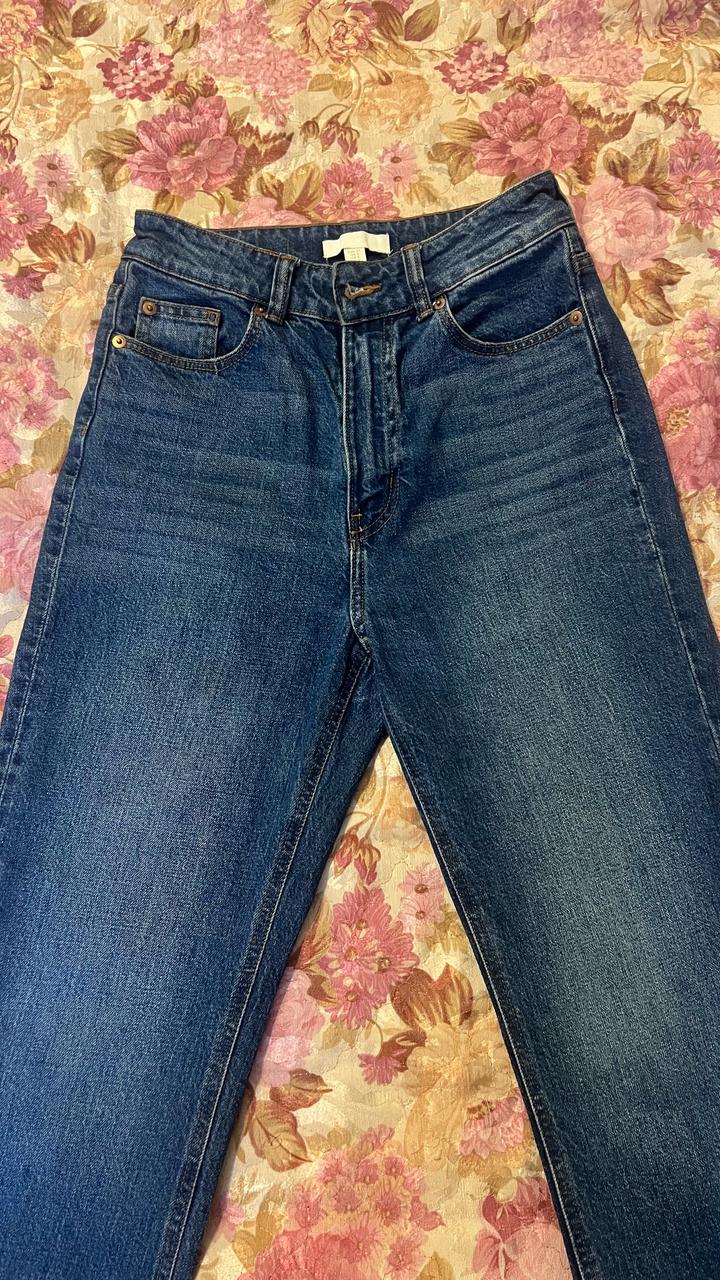 Джинсы синие. Высокая посадка. Длина 7/8. Носила 1 раз. Артикул: 579598