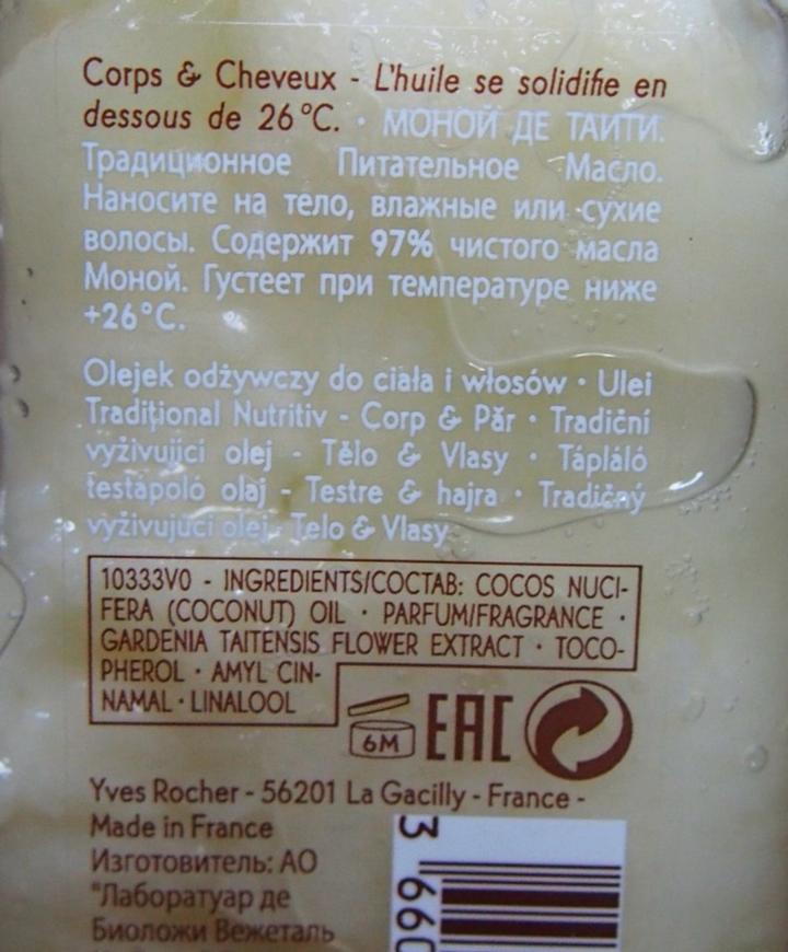 Масло для тела и волос Monoi de Tahiti Yves Rocher 100ml-