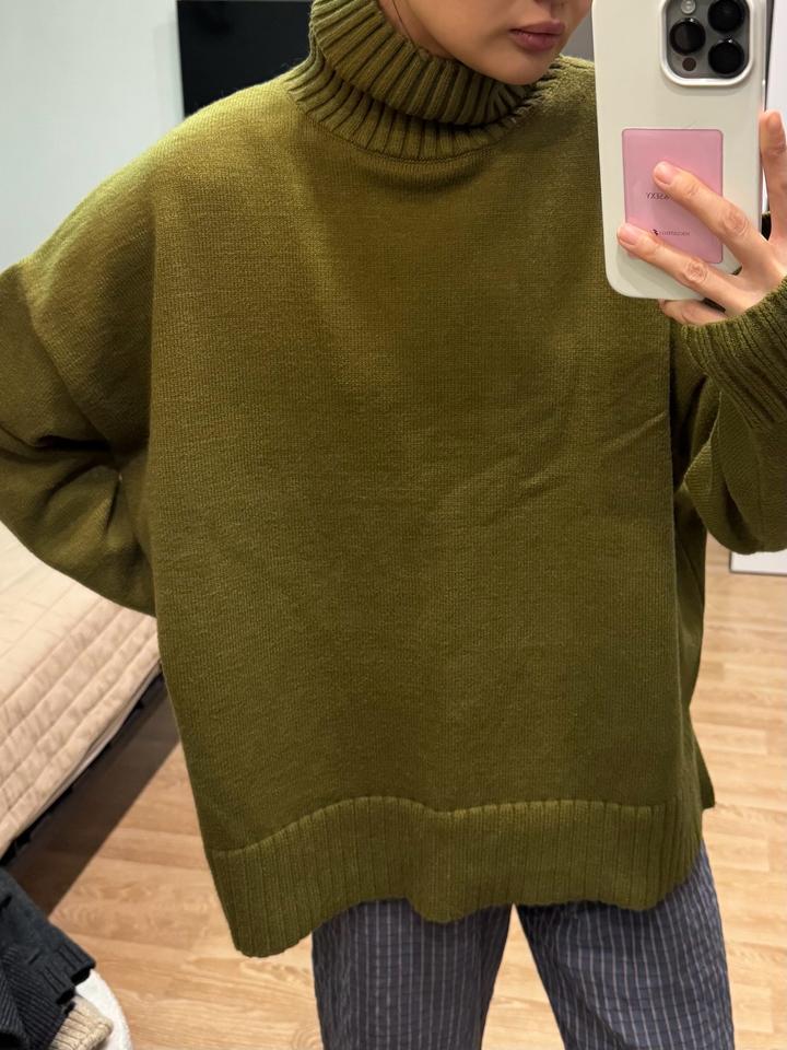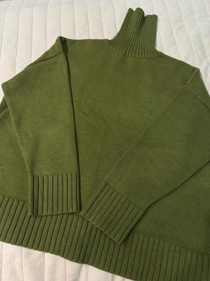 Темно-зеленый свитер с высоким горлом оверсайз Артикул: 579744