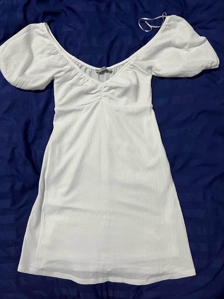 Воздушное белое платье с пышными рукавамиXS