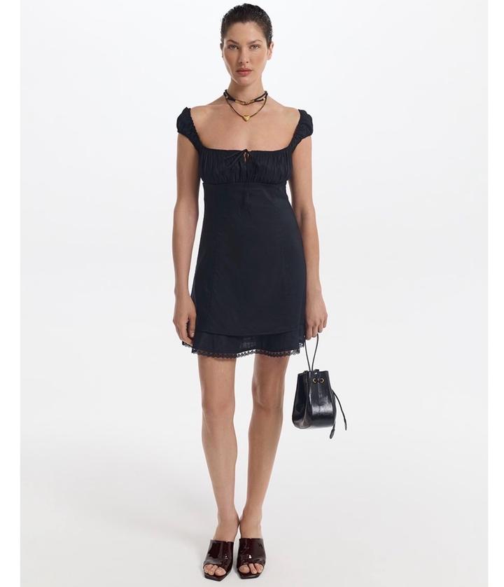 Стильное и женственное платье длины мини, которое идеально впишется в летний гардероб. Модель выполнена в эстетике «кокетки» (coquette core) с элементами викторианского стиля. Это платье отлично сочетается как с грубыми ботинками для создания контрастного образа, так и с изящными босоножками. Артикул: 579830