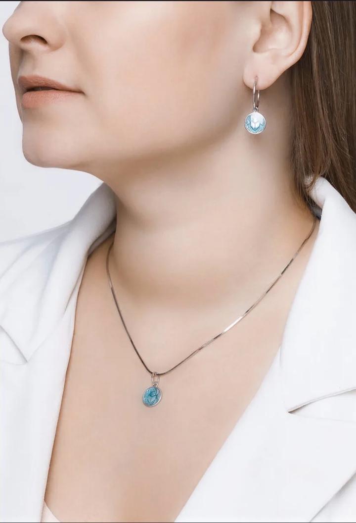 Подвеска и сережки SOKOLOV из серебра, вставки эмаль Цепочка в комплекте не шла, не знаю из чего она Артикул: 579912