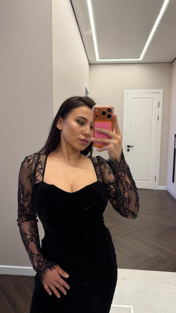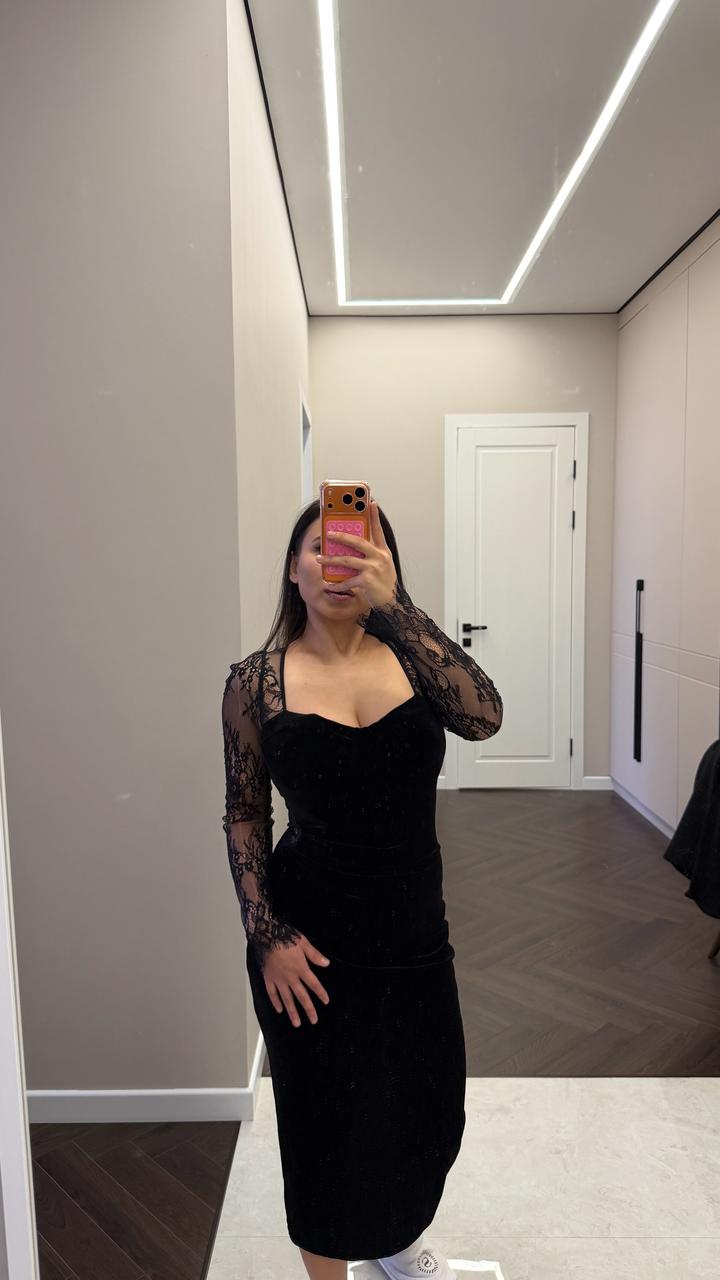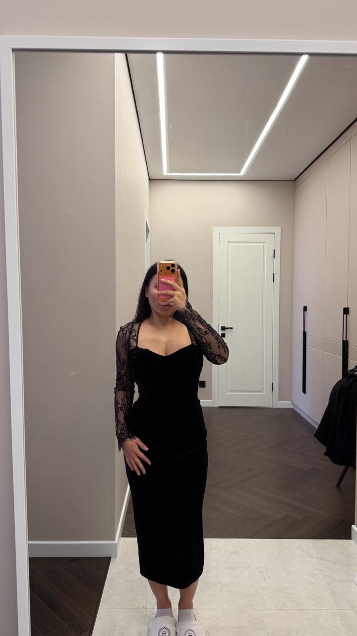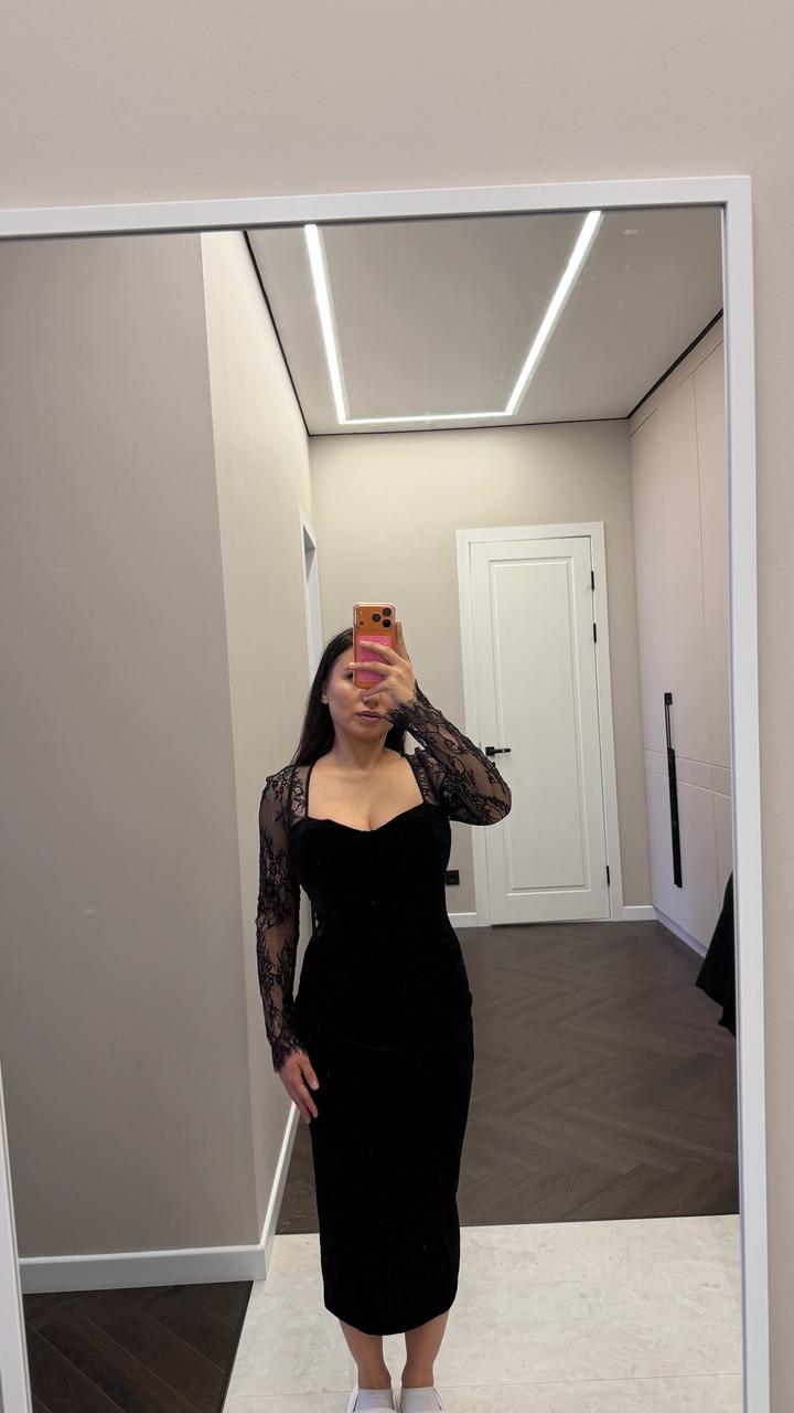 Элегантное Женственное платье бархат с кружевами, размер S Состояние отличное Покупала за 52 000 Артикул: 579927