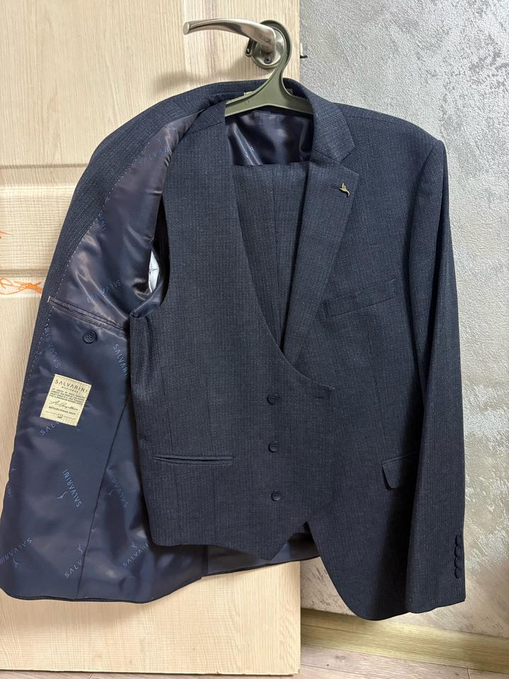 Мужской классический костюм-тройка (пиджак + жилет + брюки) Продается стильный мужской костюм-тройка в отличном состоянии. Цвет — темно-синий. Качественная ткань, аккуратный пошив, смотрится дорого и солидно. Подойдет для свадьбы, торжества, работы, деловых встреч и других мероприятий. ✔ Пиджак ✔ Жилет ✔ Брюки ✔ Отличное состояние ✔ Классический стиль ✔ Качественный материал Размер: 52 Цена: 18000 Возможен небольшой торг реальному покупателю. Артикул: 580004