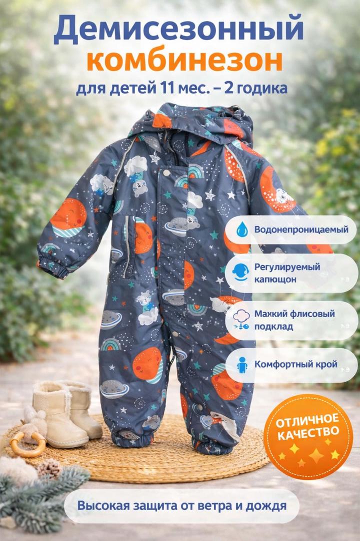 Детский комбинезон бренда Lassye с ярким принтом на космическую тематику (планеты, звезды, медведи в космосе). Это функциональная верхняя одежда, предназначенная для защиты детей от непогоды Особенности и характеристики Такие комбинезоны обычно обладают следующими характеристиками: Материалы: Внешний слой часто выполняется из мембранной ткани, которая обладает водоотталкивающими и ветрозащитными свойствами. Утеплитель: В зависимости от модели (зимняя или демисезонная), в качестве наполнителя Артикул: 580024