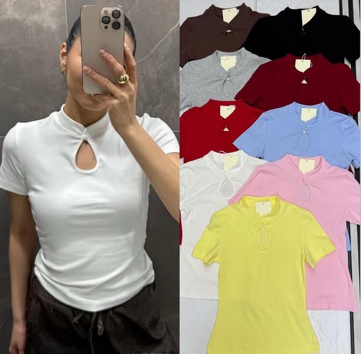 Стильная базовая футболка с оригинальным вырезом спереди 🤍 Мягкий, приятный к телу материал, хорошо тянется и красиво сидит по фигуре. Идеально подходит как на каждый день, так и под более элегантные образы. Размер: стандарт (подходит на S–M) Цвета в наличии: разные ❣️ Удобная и универсальная модель. Артикул: 580042