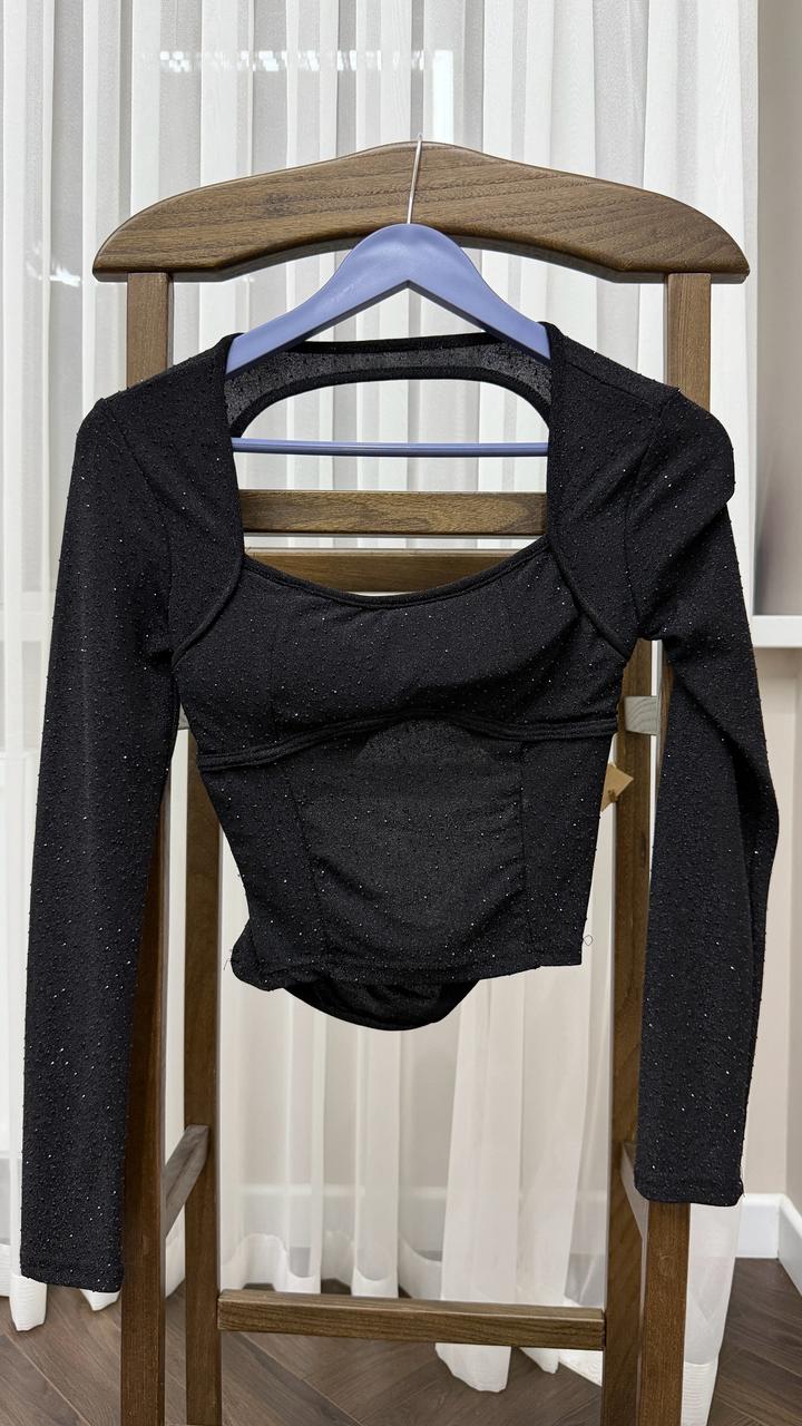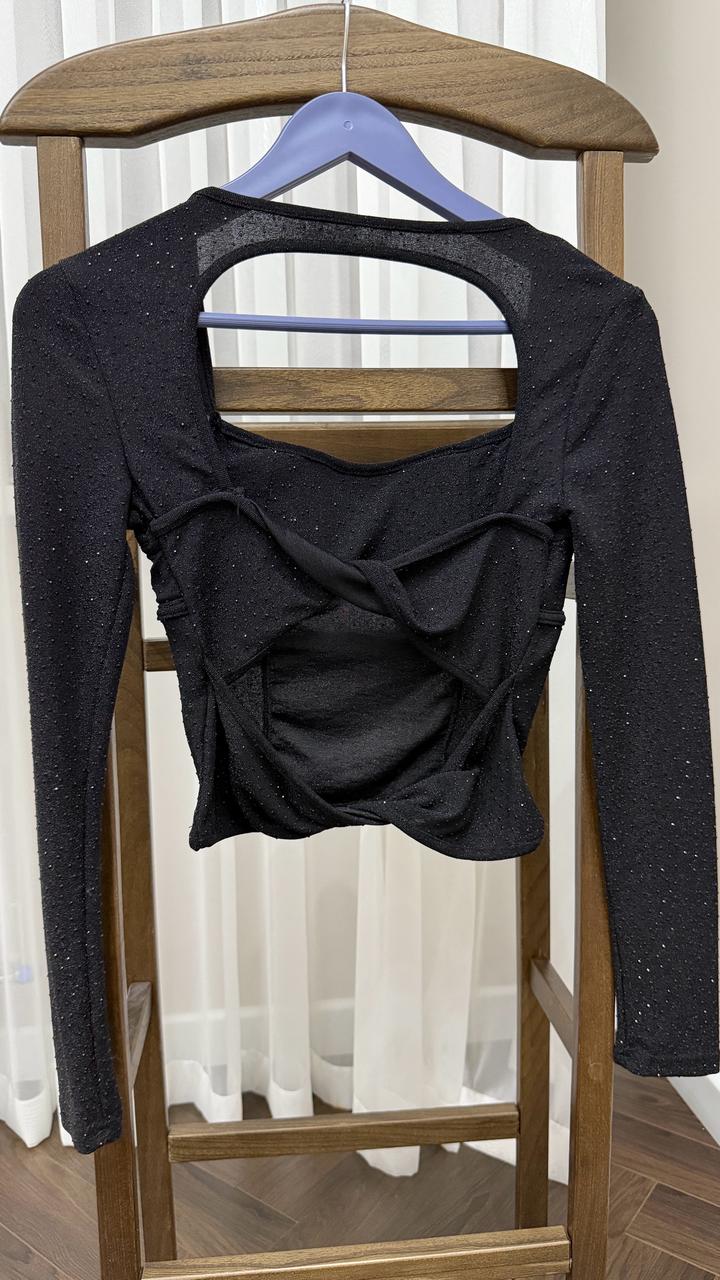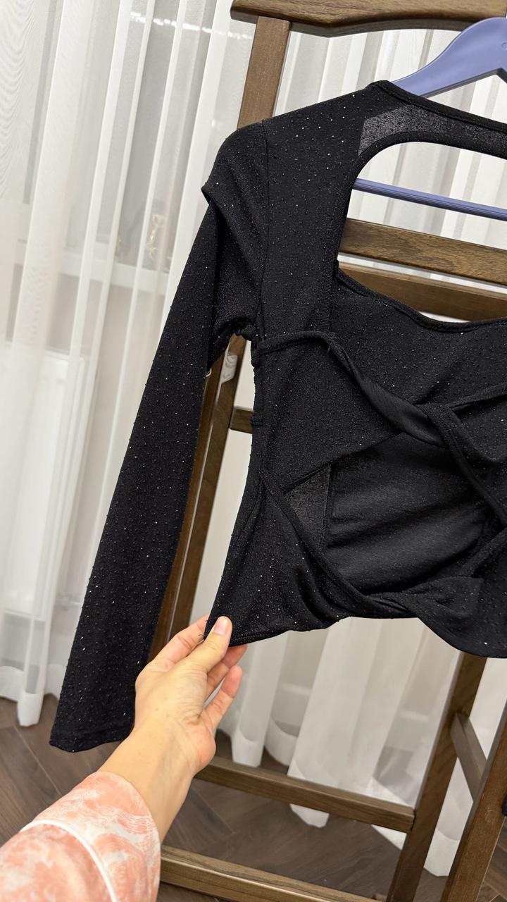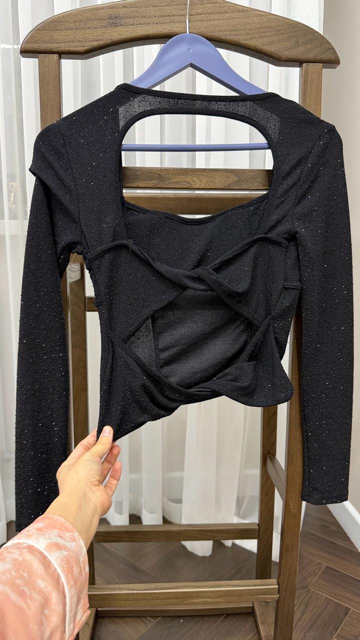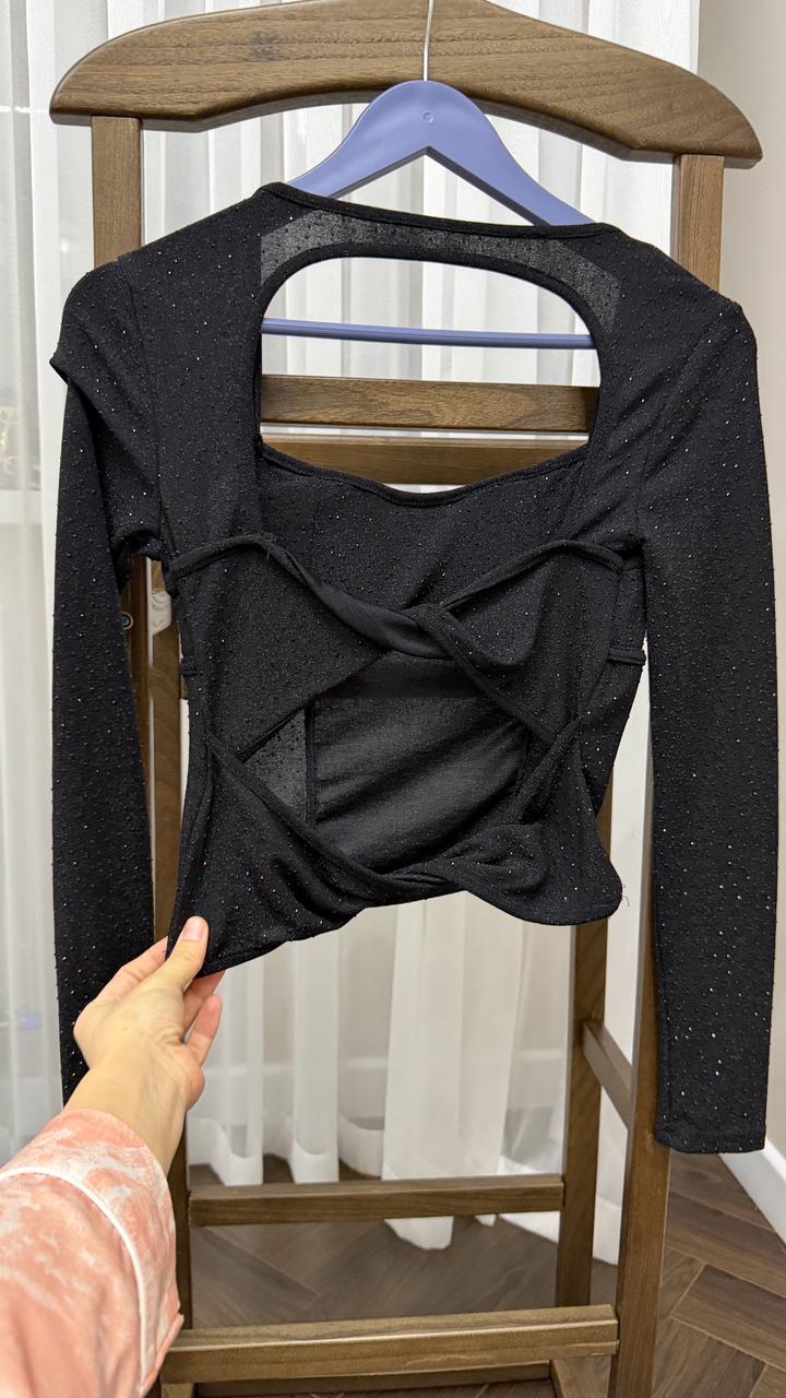 Блузка черная вечерняя размер S с открытой спинкойS