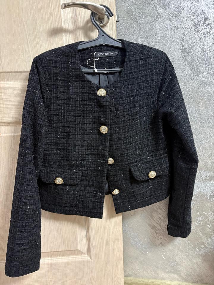 Стильный жакет для девочки / подростка Продается красивый жакет в отличном состоянии. Цвет — черный, элегантный дизайн с декоративными пуговицами. Смотрится очень стильно и дорого. Подойдет для школы, праздников, мероприятий и повседневной носки. ✔ Отличное состояние ✔ Модный и аккуратный фасон ✔ Качественная ткань ✔ Красивые декоративные пуговицы ✔ Подходит для школы и праздников Размер: S Цена: 3500 Возможен небольшой торг. Артикул: 580053