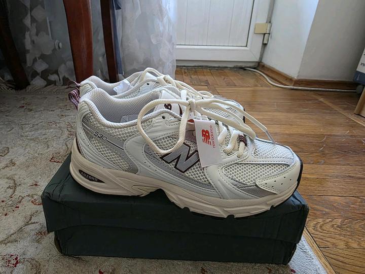 Продам кроссовки New Balance 530 Цвет - Salt/Mercury Бежевые с красным Размер 39.5 Причина продажи - не подошел размер Новые в этикетке, только коробка помята Точная коп и я, поэтому такая цена (таобао) Артикул: 580094