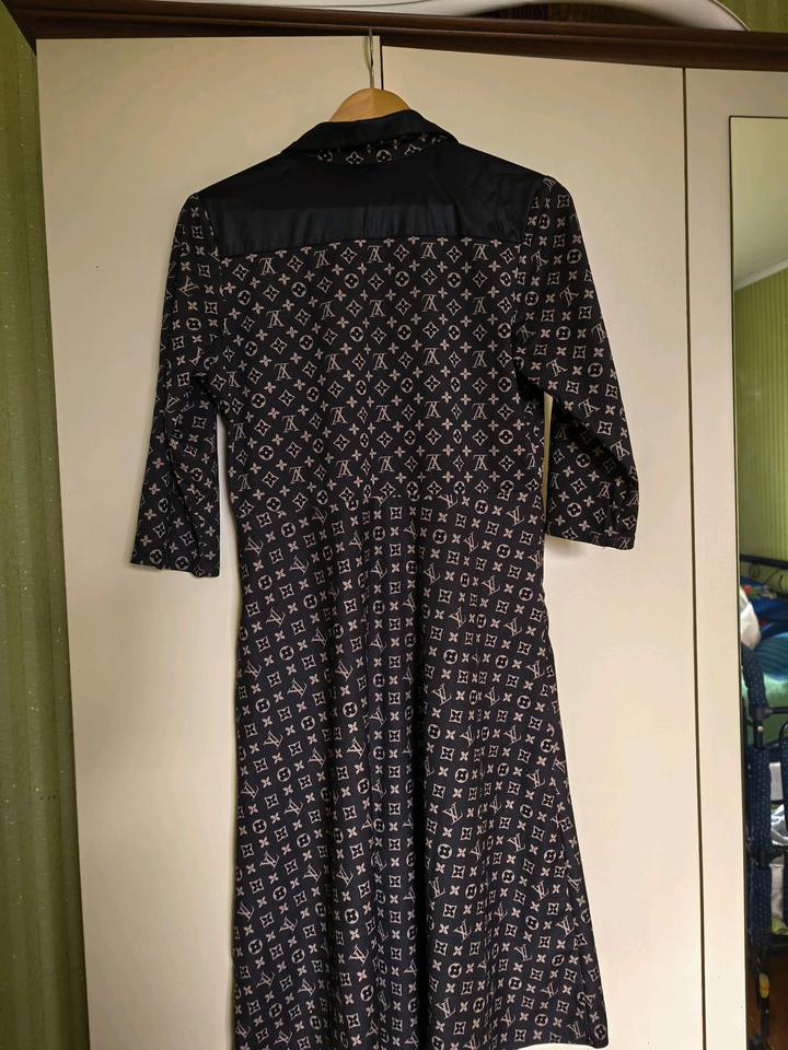 Женственное платье с графичным принтом, приталенный фасон, А силуэта, рукава три четверти, размер M. Рубашечный воротник, сбоку молния, карманы в боковых швах, есть пояс. Ткань плотная, хорошо держит форму. Отлично подойдёт как для работы, так и для учёбы. Можно сочетать с сапогами, ботильонами, с лодочками или лоферами. Артикул: 580129